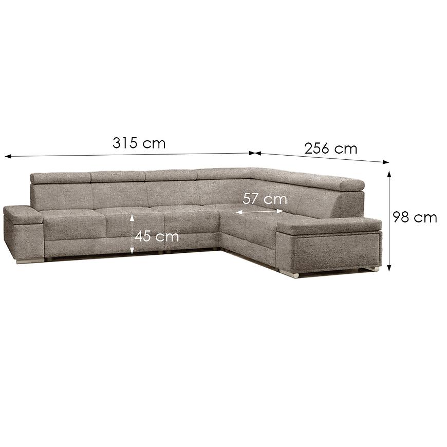 Elegancki narożnik Ester B+2F+R+3+B Majestic 605 w ciepłym, brązowym odcieniu to idealny wybór do przestronnego salonu. Duży, komfortowy mebel o wymiarach 315x256 cm oferuje wygodne miejsce do codziennego relaksu, a dzięki funkcji spania z mechanizmem delfin zapewnia również przestrzeń do okazjonalnego noclegu (187x127 cm).