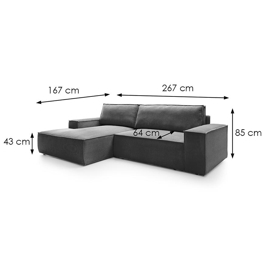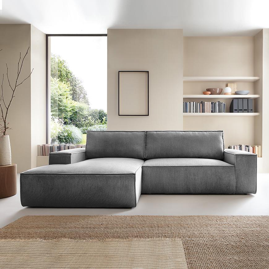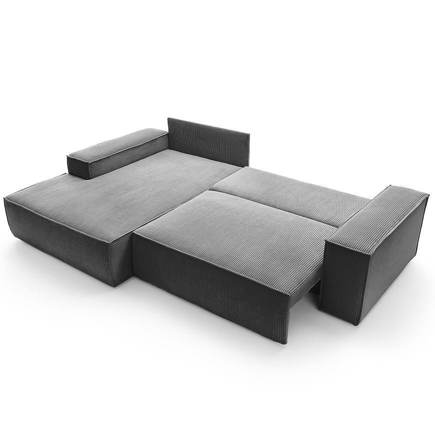 Narożnik Faro ma kształt litery L, co pozwala na wygodne rozłożenie się i spędzenie czasu w gronie rodziny lub przyjaciół. Co więcej, posiada funkcję spania, która pozwala na przekształcenie, po rozłożeniu to okazjonalne miejsce do spania o wymiarach 135x210 cm.