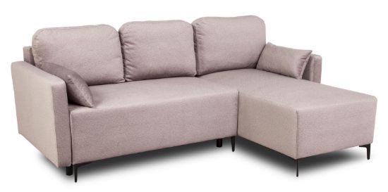 Ozdobne nóżki metalowe w kolorze czarnym zamocowane w siedzisku narożnika dodają mu nowoczesnego charakteru i sprawiają, że staje się on designerskim elementem Twojego wnętrza. Plastikowe nóżki na skrzyni gwarantują stabilność i trwałość.