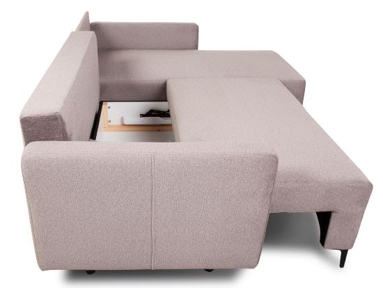 Mechanizm ułatwiający rozkładanie narożnika został zaprojektowany z myślą o Twojej wygodzie. Dzięki niemu proces przekształcania sofy w łóżko staje się prosty i szybki. Dodatkowo, wbudowany pojemnik na pościel sprawia, że przechowywanie pościeli i kołder nie stanowi problemu, a Twoje mieszkanie zawsze będzie utrzymane w porządku.