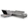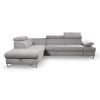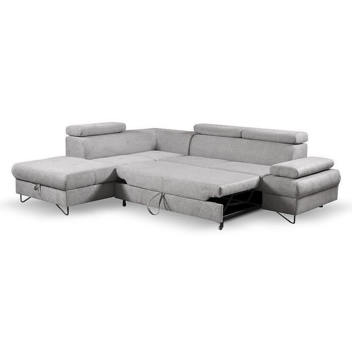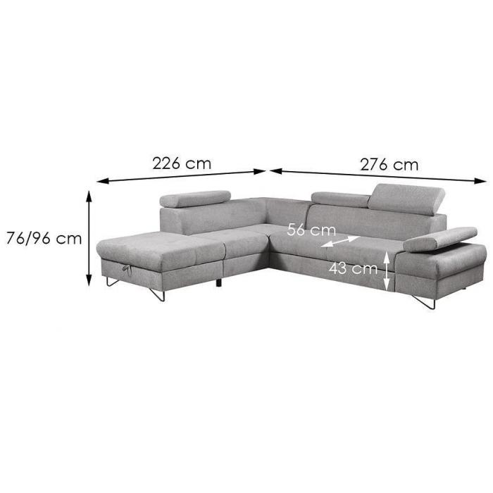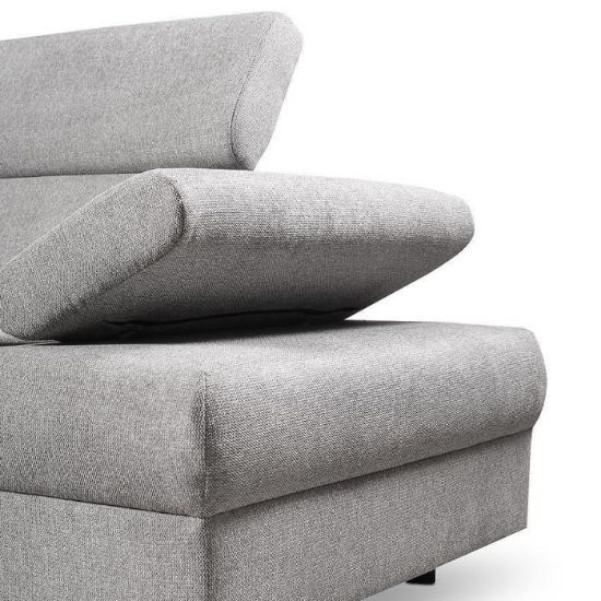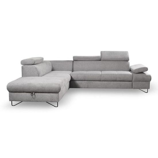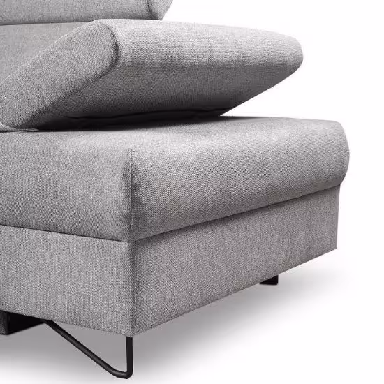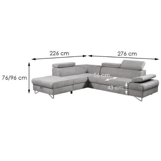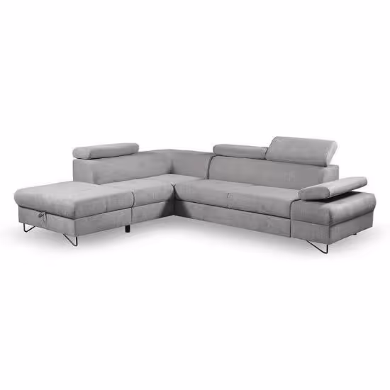 Narożnik Flavo Loft został pokryty tkaniną z funkcją spania. Prostotę i łatwość użytkowania gwarantuje automat ułatwiający rozkładanie i system rozkładania typu Delfin. Jest to szybki, prosty i wygodny sposób rozkładania. Jest jednym z najbardziej popularnych systemów rozkładania, który jest wykorzystywany w narożnikach. Polega on na wysunięciu spod siedziska narożnika, wbudowanej tam szuflady i podniesieniu, zamontowanego wewnątrz, stelaża za pomocą uchwytu. Meble posiada pojemnik, do którego można schować pościel, dodatkowe koce czy też poduszki. Po rozłożeniu to okazjonalne miejsce do spania o wymiarach 124x195 cm. Wysokość narożnika 76/96 cm. W siedzisku zastosowano sprężynę falistą, która dostosowuje się do ciężaru i kształtu ciała, zapewniając tym samym wysoki komfort siedzenia. Ten niepowtarzalny mebel wypoczynkowy stworzono z myślą o funkcjonalności i eleganckim wyglądzie. Narożnik dostępny w wersji prawostronnej i lewostronnej.