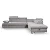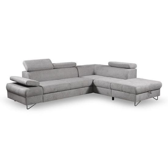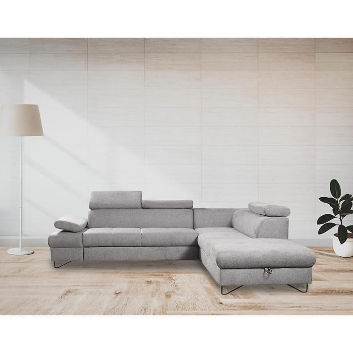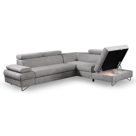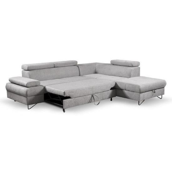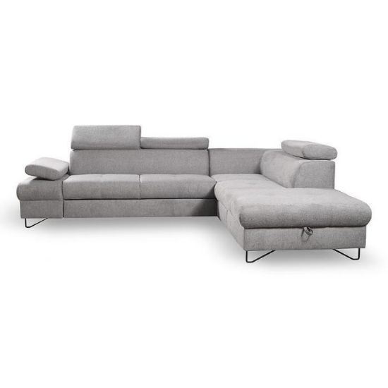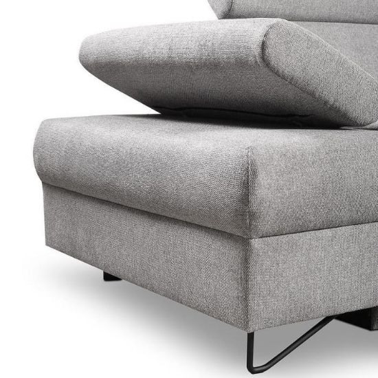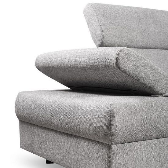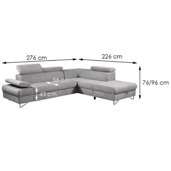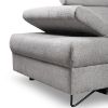 Narożnik Flavo Loft został pokryty tkaniną z funkcją spania. Prostotę i łatwość użytkowania gwarantuje automat ułatwiający rozkładanie i system rozkładania typu Delfin. Jest to szybki, prosty i wygodny sposób rozkładania. Jest jednym z najbardziej popularnych systemów rozkładania, który jest wykorzystywany w narożnikach. Polega on na wysunięciu spod siedziska narożnika, wbudowanej tam szuflady i podniesieniu, zamontowanego wewnątrz, stelaża za pomocą uchwytu. Meble posiada pojemnik, do którego można schować pościel, dodatkowe koce czy też poduszki. Po rozłożeniu to okazjonalne miejsce do spania o wymiarach 124x195 cm. Wysokość narożnika 76/96 cm. W siedzisku zastosowano sprężynę falistą, która dostosowuje się do ciężaru i kształtu ciała, zapewniając tym samym wysoki komfort siedzenia. Ten niepowtarzalny mebel wypoczynkowy stworzono z myślą o funkcjonalności i eleganckim wyglądzie. Narożnik dostępny w wersji prawostronnej i lewostronnej.