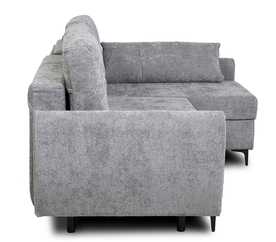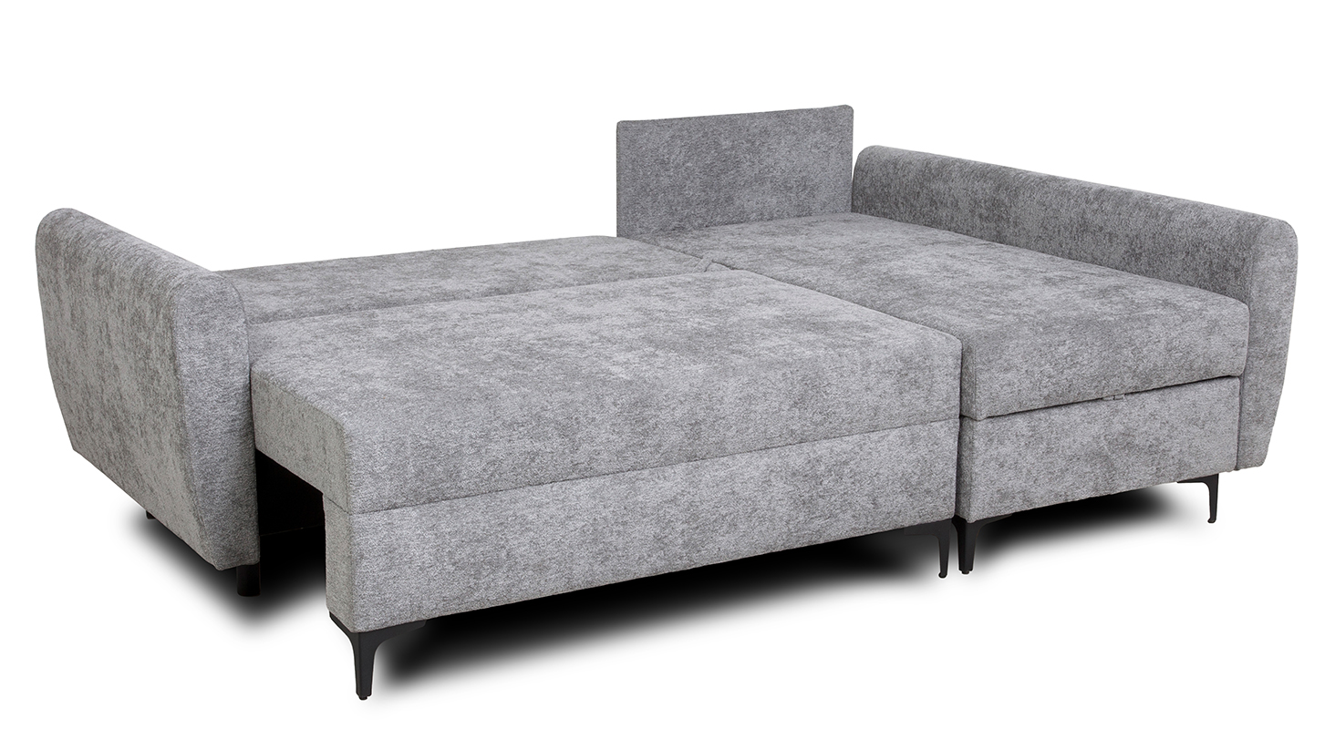 Rozkładanie narożnika jest szybkie i wygodne dzięki zastosowaniu automatu DL, który znacznie ułatwia obsługę. Dwa duże pojemniki na pościel zapewniają dodatkową przestrzeń do przechowywania, co pozwala utrzymać porządek w pomieszczeniu.