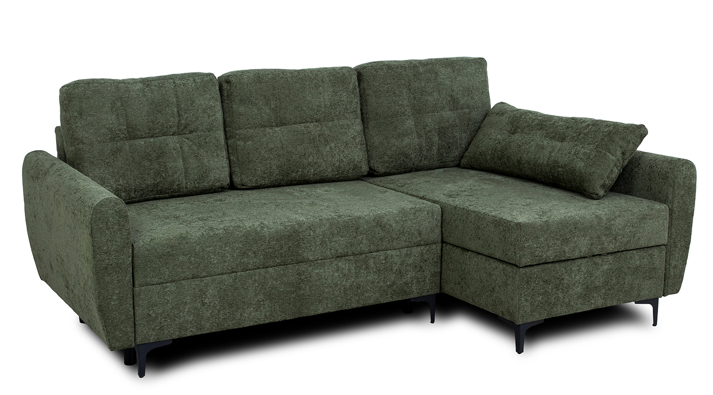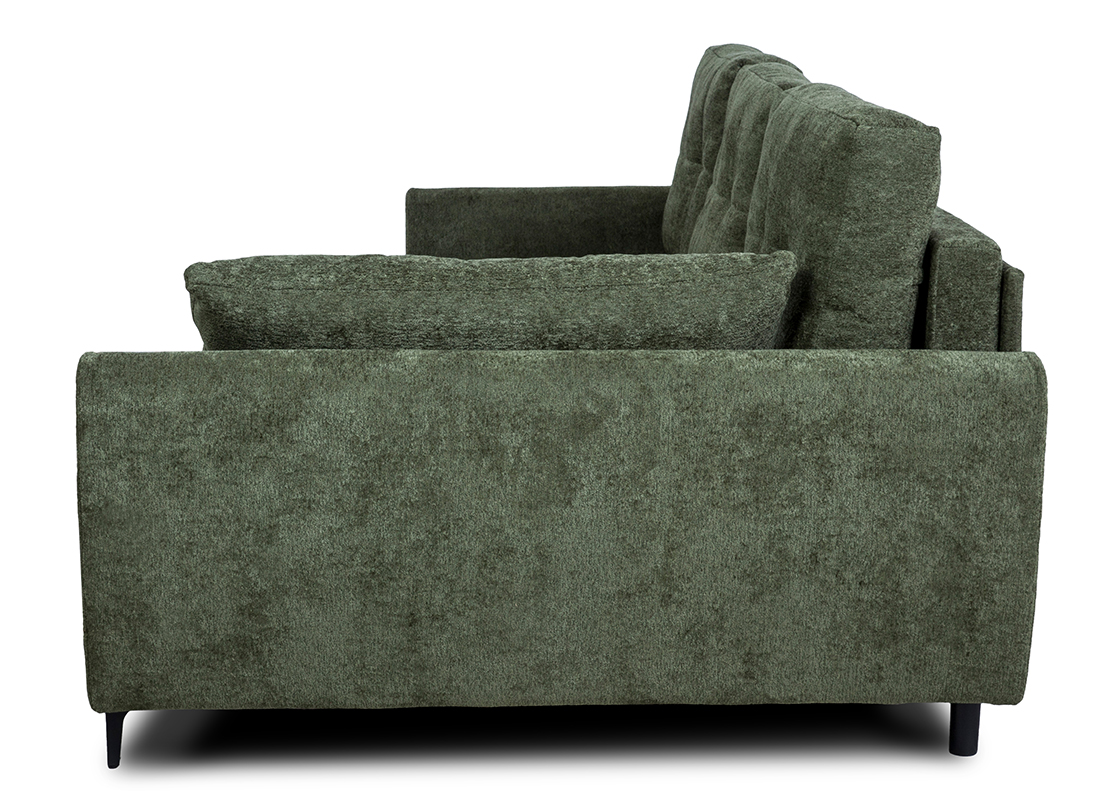 Narożnik z funkcją spania Focus Lux to duży, wygodny i stylowy mebel, który spełni oczekiwania nawet najbardziej wymagających użytkowników. Zielona tapicerka, ozdobne przeszycia oraz czarne nóżki nadają mu wyjątkowego charakteru, a przemyślana konstrukcja zapewnia wygodę i trwałość na lata. Dzięki funkcji spania i dwóm pojemnikom na pościel narożnik sprawdzi się zarówno w codziennym użytkowaniu, jak i podczas przyjmowania gości.