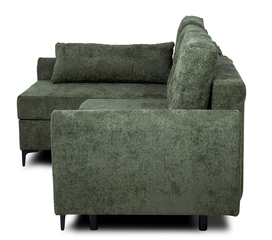 Narożnik z funkcją spania Focus Lux to połączenie nowoczesnej stylistyki, wygody i praktycznych rozwiązań. Zielone obicie w tkaninie Toro, dekoracyjne przeszycia i czarne nóżki sprawiają, że mebel wyróżnia się elegancją i doskonale pasuje do współczesnych aranżacji. Dzięki funkcji spania, dużej powierzchni użytkowej oraz pojemnym schowkom narożnik sprawdzi się zarówno na co dzień, jak i w trakcie przyjmowania gości. To propozycja dla osób, które poszukują dużego narożnika do salonu, łączącego estetykę z komfortem i funkcjonalnością.