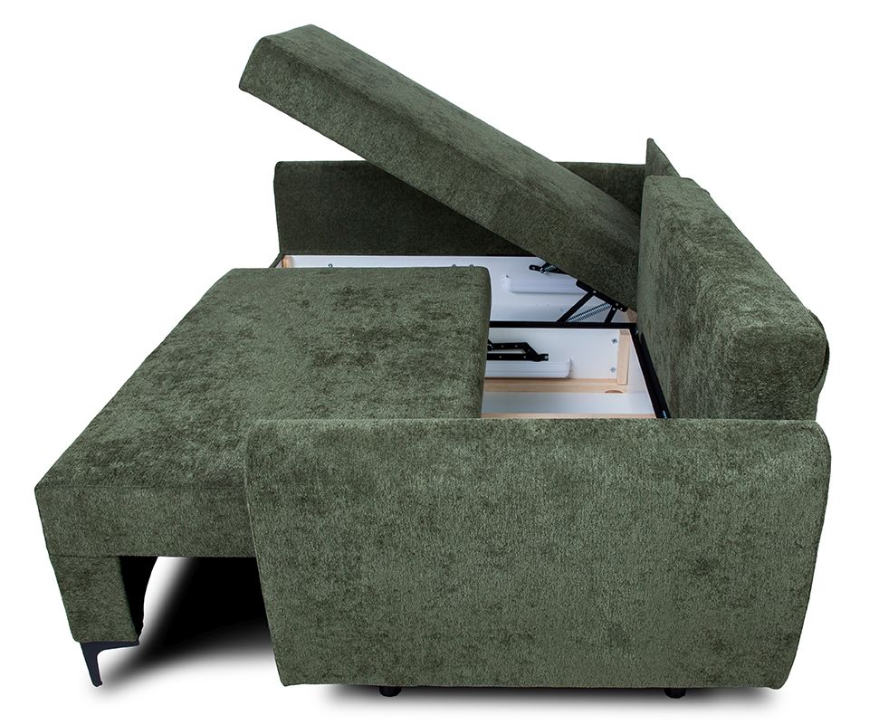 elegancki narożnik w kolorze zielonym wykonany z tkaniny Toro,