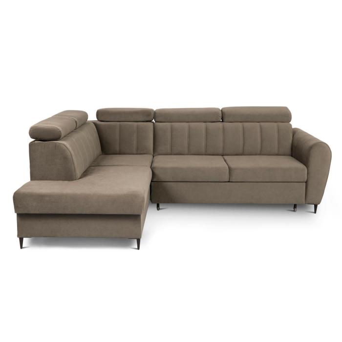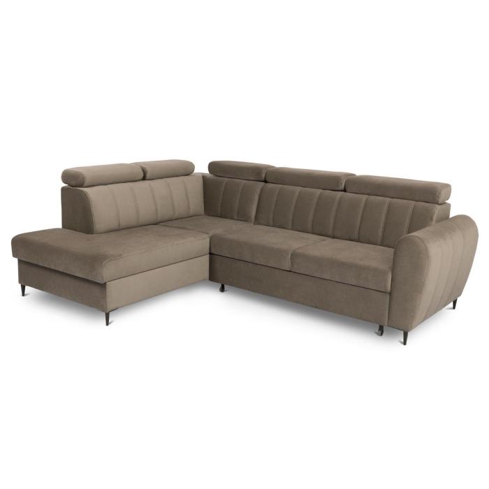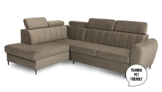 Narożnik z funkcją spania Forio to mebel idealny dla rodzin, które cenią sobie wspólny wypoczynek na sofie. Klasyczny narożnik z funkcją spania wyposażony został w sprężyny faliste oraz piankę co znacznie podnosi komfort wypoczynku. Wygodne, stałe oparcie z regulowanymi zagłówkami. Narożnik Forio dostępny jest w tkaninie Paros w kolorze beżowym. Jako element dekoracyjny zastosowano ozdobne przeszycia na oparciu i bokach narożnika. Narożnik tapicerowany świetnie sprawdzi się salonie lub innym pomieszczeniu. Meble wypoczynkowe wyposażone w funkcję spania to doskonały wybór na długie lata.