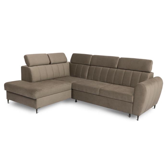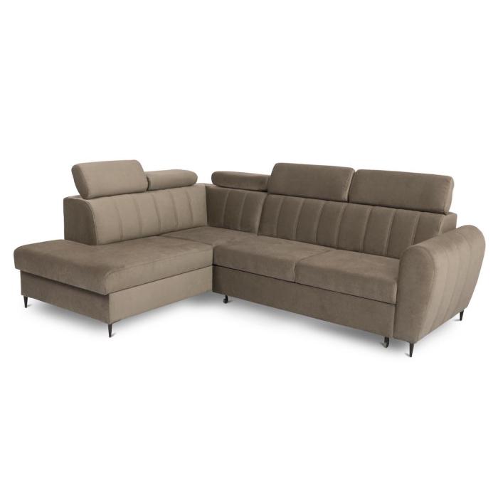 Narożnik z funkcją spania Forio to mebel idealny dla rodzin, które cenią sobie wspólny wypoczynek na sofie. Klasyczny narożnik z funkcją spania wyposażony został w sprężyny faliste oraz piankę co znacznie podnosi komfort wypoczynku. Wygodne, stałe oparcie z regulowanymi zagłówkami. Narożnik Forio dostępny jest w tkaninie Paros w kolorze beżowym. Jako element dekoracyjny zastosowano ozdobne przeszycia na oparciu i bokach narożnika. Narożnik tapicerowany świetnie sprawdzi się salonie lub innym pomieszczeniu. Meble wypoczynkowe wyposażone w funkcję spania to doskonały wybór na długie lata.