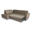Sposób rozkładania to popularny Delfin, pomaga szybko i bezproblemowo przekształcić narożnik w przestronne łóżko. Rozkładanie typu Delfin jest najczęściej spotykane w narożnikach i kanapach, to bardzo prosty system rozkładania - spod siedziska wysuwamy wózek umieszczony na kółkach, a następnie podciągamy leżący element uzupełniający powierzchnię spania. Po rozłożeniu otrzymujemy powierzchnia spania o wymiarach 128x200 cm. Pościel można schować do pojemnika znajdującego się w otomanie, zapewniając ład i porządek w pomieszczeniu.