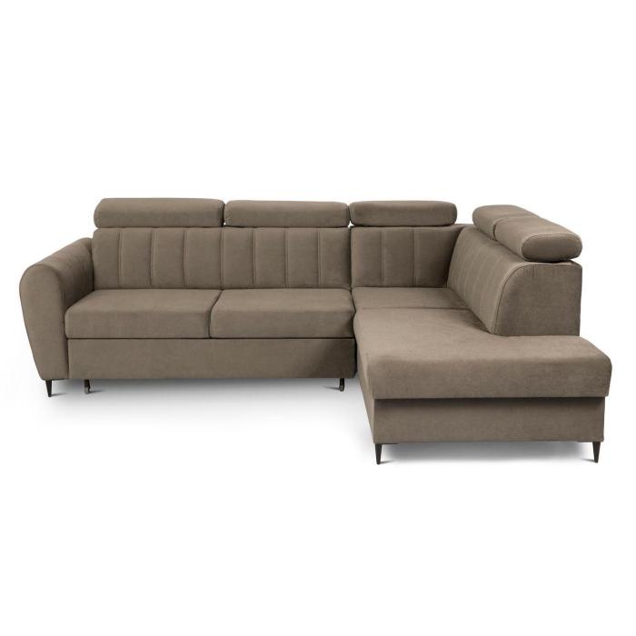 Narożnik z funkcją spania Forio to mebel idealny dla rodzin, które cenią sobie wspólny wypoczynek na sofie. Klasyczny narożnik z funkcją spania wyposażony został w sprężyny faliste oraz piankę co znacznie podnosi komfort wypoczynku. Wygodne, stałe oparcie z regulowanymi zagłówkami. Narożnik Forio dostępny jest w tkaninie Paros w kolorze beżowym. Jako element dekoracyjny zastosowano ozdobne przeszycia na oparciu i bokach narożnika. Narożnik tapicerowany świetnie sprawdzi się salonie lub innym pomieszczeniu. Meble wypoczynkowe wyposażone w funkcję spania to doskonały wybór na długie lata.