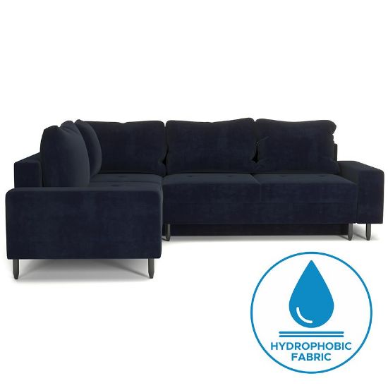 Narożnik Havana Monolith 79 to nie tylko wygoda, ale także solidność. Wypełnienie siedziska oparte na sprężynie falistej zapewnia trwałość i podparcie, utrzymując jednocześnie miękkość siedzenia. Tkanina hydrofobowa w eleganckim granatowym odcieniu nadaje meblowi niepowtarzalnego charakteru, a jednocześnie chroni przed wilgocią.