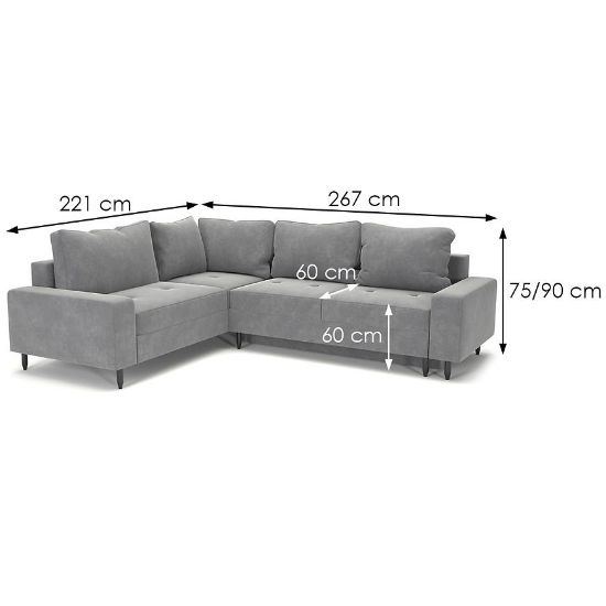 Zastosowana w narożniku funkcja spania pozwala na szybkie przekształcenie, po rozłożeniu to okazjonalne miejsce do spania o wymiarach 118x230 cm. Mechanizm rozkładania DL gwarantuje płynność i bezproblemowe korzystanie z tej praktycznej funkcji. Pojemnik na pościel ułatwia przechowywanie pościeli. Automat do rozkładania umożliwiają dostosowanie sofy do własnych potrzeb, tworząc idealne miejsce do relaksu i odpoczynku.