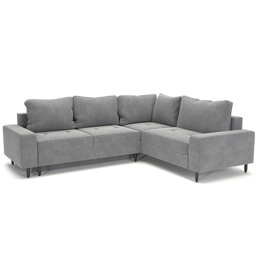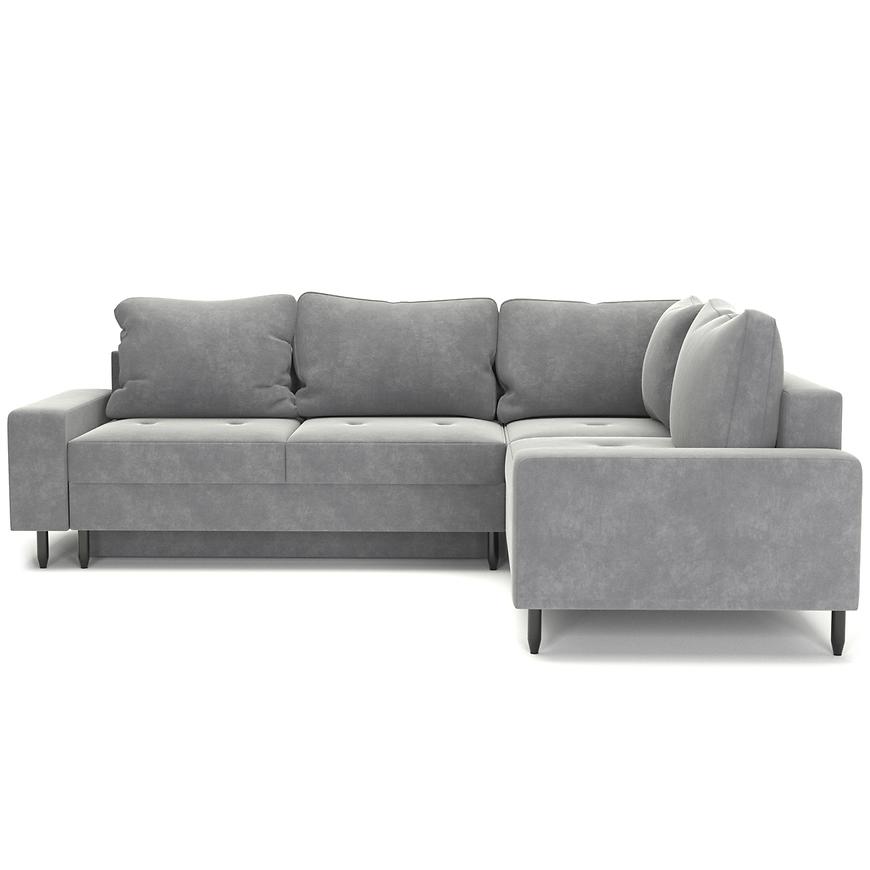 Narożnik, w kolorze jasnej szarości, wprowadzI do Twojego wnętrza nutę klasyki i nowoczesności jednocześnie. Czarne nogi doskonale komponują się z całością, nadając meblowi lekkości i finezji. Automat do rozkładania umożliwiają dostosowanie sofy do własnych preferencji, zapewniając wyjątkowy komfort w każdej sytuacji. W komplecie znajdziesz również ozdobne poduszki, które nie tylko nadają sofie wyjątkowego charakteru, ale także podkreślają jej ergonomiczną formę.