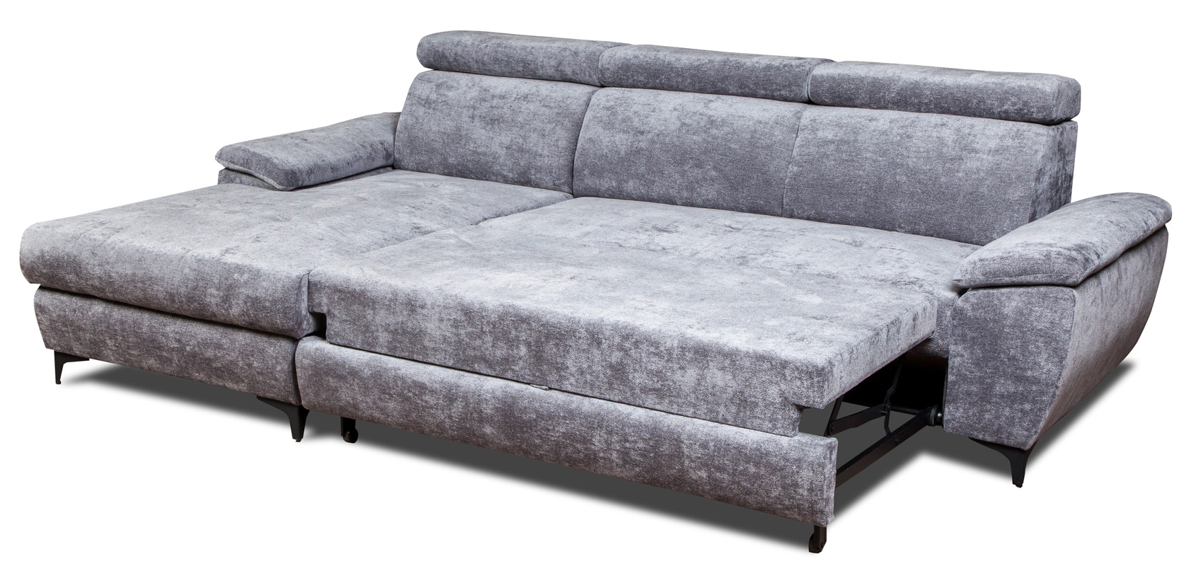 Narożnik Hermes oferuje intuicyjną funkcję spania dzięki zastosowaniu systemu rozkładania wózek. Wystarczy wysunąć dolną część mebla, aby uzyskać wygodną powierzchnię o wymiarach 124 × 200 cm. To idealna przestrzeń do okazjonalnego nocowania gości, a także dla osób, które potrzebują dodatkowego miejsca do wypoczynku.