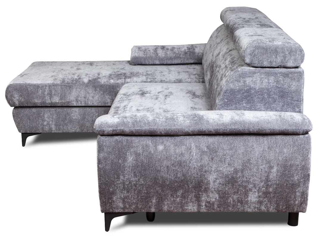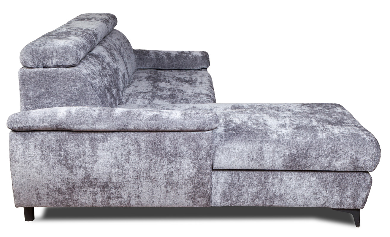 Model Hermes wyposażono w regulowane zagłówki, które pozwalają zmieniać wysokość oparcia zgodnie z preferencjami użytkownika. Dzięki temu można wygodnie oprzeć głowę podczas oglądania telewizji, czytania lub krótkiej drzemki. Stałe oparcie nadaje konstrukcji stabilności, jednocześnie tworząc spójną i estetyczną linię, która podkreśla nowoczesny design narożnika.