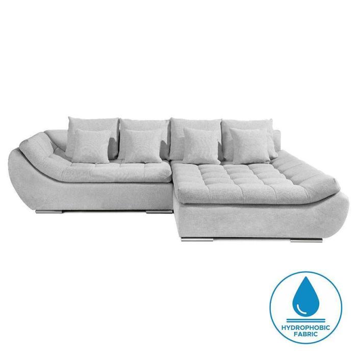 Kanapa narożna z kolekcji Hugo jest w kształcie litery L i świetnie wpasuje się zarówno do pokoju dziennego jak i salonu.