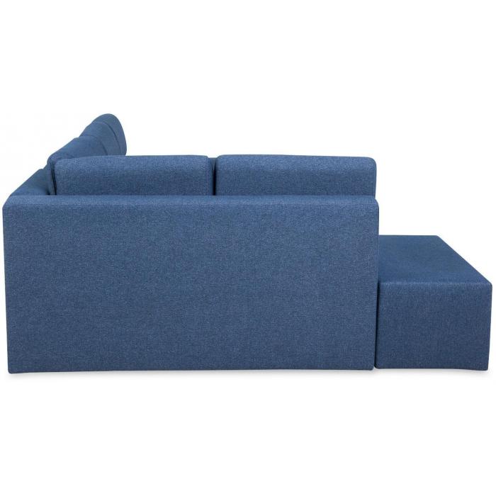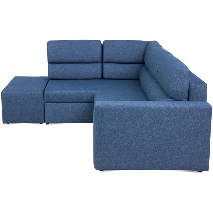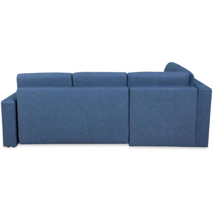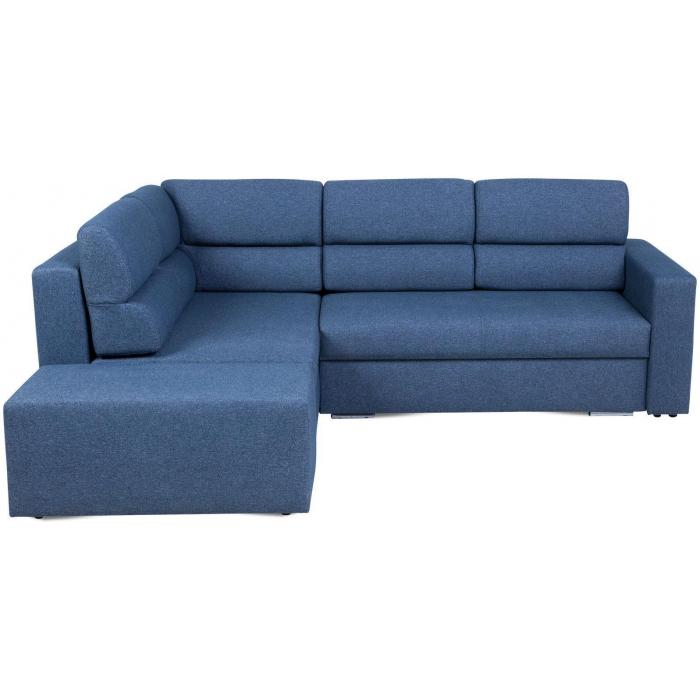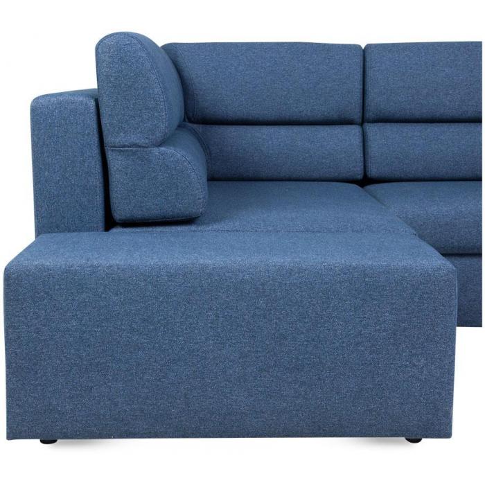 Tapicerka narożnika wykonana jest z przyjemnej w dotyku tkaniny Solid 79 w kolorze granatowym . Elegancka i prosta forma narożnika oraz kształt litery L sprawiają, że wypoczynek będzie idealnym dopełnieniem wnętrza w każdym stylu. Wygodne profilowane poduszki oparciowe stanowią nie tylko element dekoracyjny, ale poprawiają jakość wypoczynku. Tapicerowane plecy narożnika sprawiają że możesz ustawić go na środku salonu.