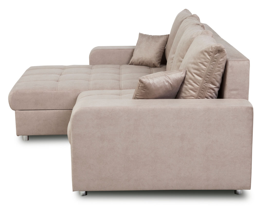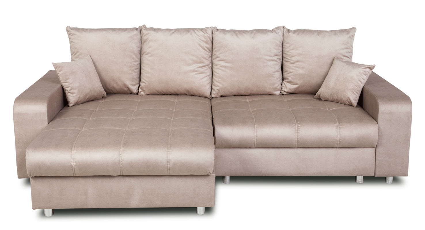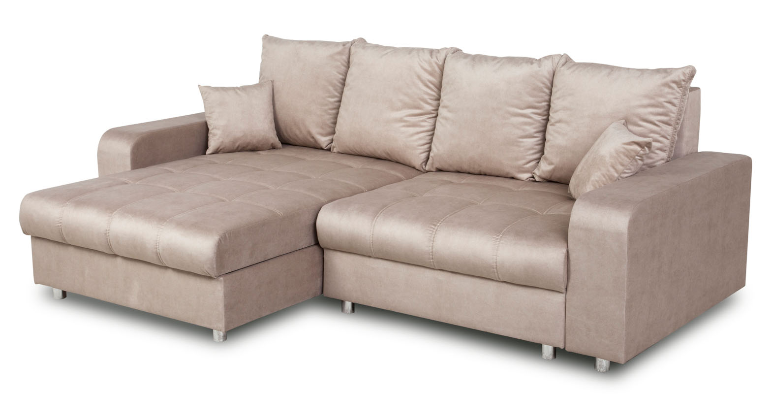 Narożnik Kronos wyróżnia się także praktycznymi detalami, takimi jak dwa pojemniki na pościel, które umożliwiają sprytne przechowywanie dodatkowego wyposażenia. Nóżki wykonane z tworzywa sztucznego w eleganckim kolorze srebrnym dodają narożnikowi lekkości i nowoczesnego charakteru.