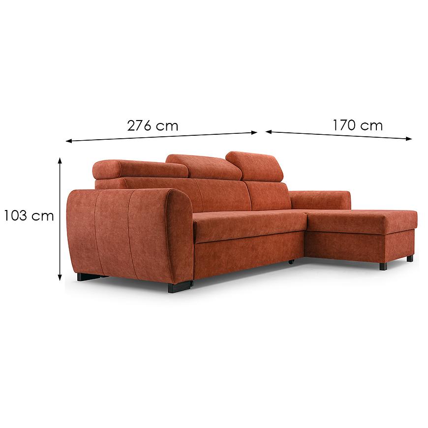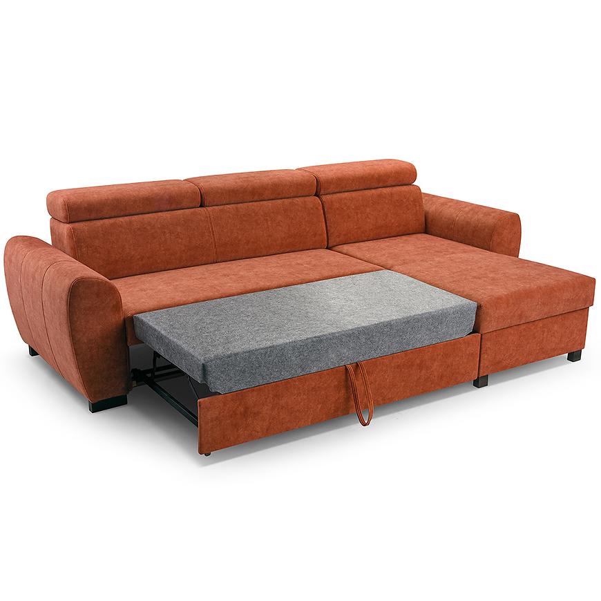 Narożnik Laguna Lux Element 9 to elegancki i funkcjonalny mebel, który łączy nowoczesny styl z wysokim komfortem użytkowania. Wykonany w oryginalnym, miedzianym kolorze, wprowadza ciepło i wyjątkowy charakter do każdego wnętrza, idealnie komponując się zarówno z klasycznymi, jak i nowoczesnymi aranżacjami. Tapicerka z trwałej, miękkiej tkaniny jest odporna na codzienne użytkowanie, co czyni narożnik idealnym wyborem na lata.