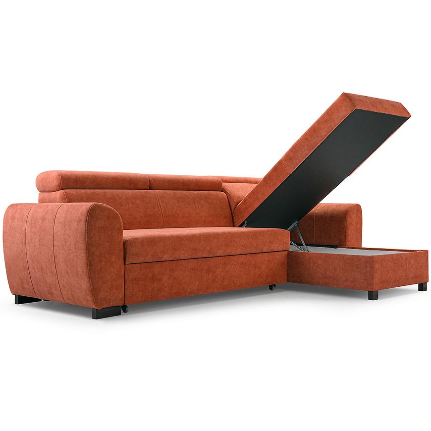 Dodatkowym atutem narożnika Laguna Lux jest pojemny schowek na pościel, który pomaga utrzymać porządek i pozwala efektywnie wykorzystać przestrzeń. Regulowany zagłówek podnosi komfort użytkowania, umożliwiając idealne dopasowanie oparcia do indywidualnych preferencji. Całość dopełniają eleganckie, drewniane nóżki, które nadają meblowi lekkości i nowoczesnego charakteru. Narożnik Laguna Lux Element 9 to stylowy i wszechstronny wybór dla osób, które cenią wygodę, jakość oraz unikalny design w codziennym użytkowaniu.