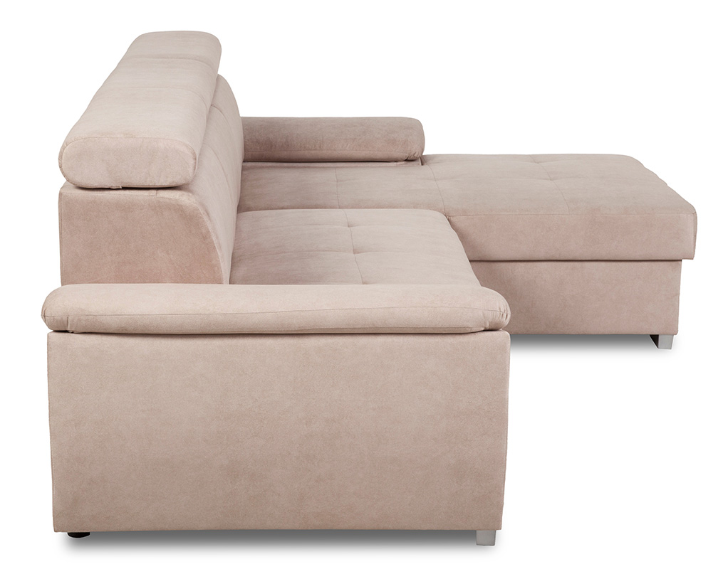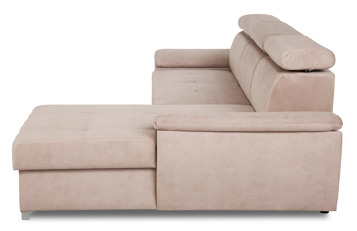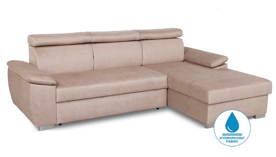 Design i materiały: Narożnik Liber został wykonany z najwyższej jakości materiałów, co gwarantuje trwałość i elegancję przez wiele lat. Jego tkanina Zetta w kolorze beżowym to nie tylko estetyczny wybór, ale również funkcjonalny. Ta aksamitna tkanina jest przyjemna w dotyku i charakteryzuje się delikatnym meszkiem, który dodaje meblowi wyjątkowej tekstury. Co więcej, tkanina Zetta jest hydrofobowa, co oznacza, że ma ograniczone wchłanianie rozlanych płynów, co czyni ją łatwą do utrzymania w czystości.