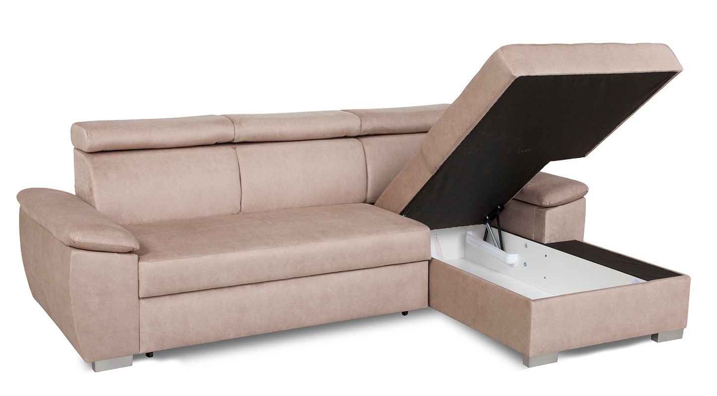 Pojemnik na pościel: Narożnik Liber został dodatkowo wyposażony w pojemnik na pościel, co sprawia, że jest niezwykle praktyczny. Możesz w nim przechowywać pościel i koce, co pozwala zaoszczędzić miejsce w innych szafach. Poza tym, kiedy będziesz potrzebować łóżka dla gości, pościel będzie zawsze pod ręką.