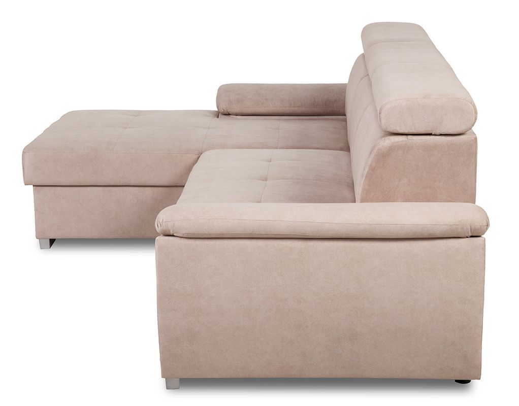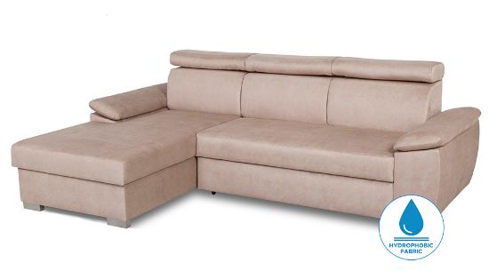 Design i materiały: Narożnik Liber został wykonany z najwyższej jakości materiałów, co gwarantuje trwałość i elegancję przez wiele lat. Jego tkanina Zetta w kolorze beżowym to nie tylko estetyczny wybór, ale również funkcjonalny. Ta aksamitna tkanina jest przyjemna w dotyku i charakteryzuje się delikatnym meszkiem, który dodaje meblowi wyjątkowej tekstury. Co więcej, tkanina Zetta jest hydrofobowa, co oznacza, że ma ograniczone wchłanianie rozlanych płynów, co czyni ją łatwą do utrzymania w czystości.
