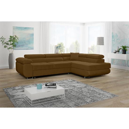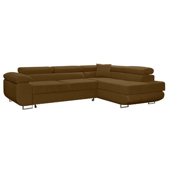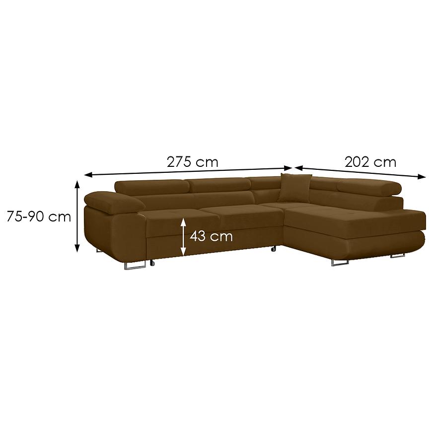 Orientacja prawej strony oraz kształt litery L sprawiają, że narożnik doskonale wpasowuje się w różnorodne aranżacje wnętrz. Po rozłożeniu to okazjonalne miejsce do spania o wymiarach 125x208 cm.