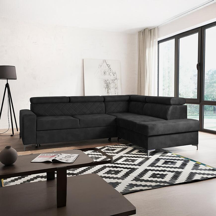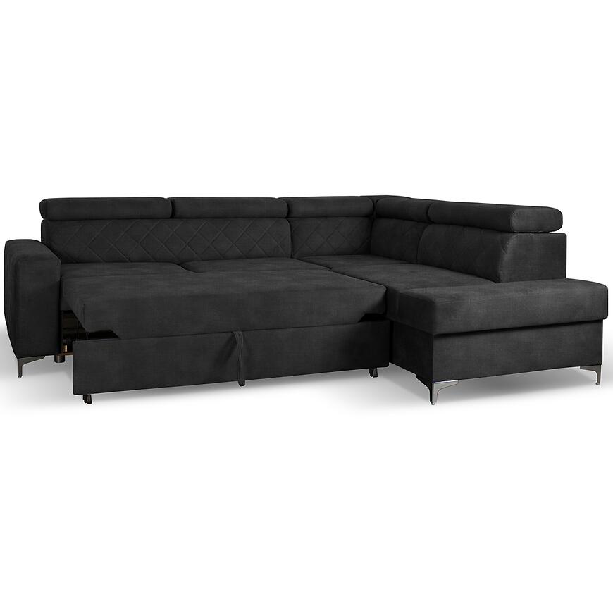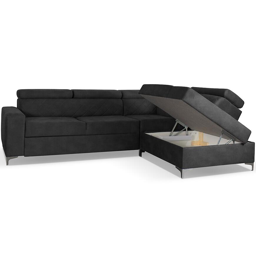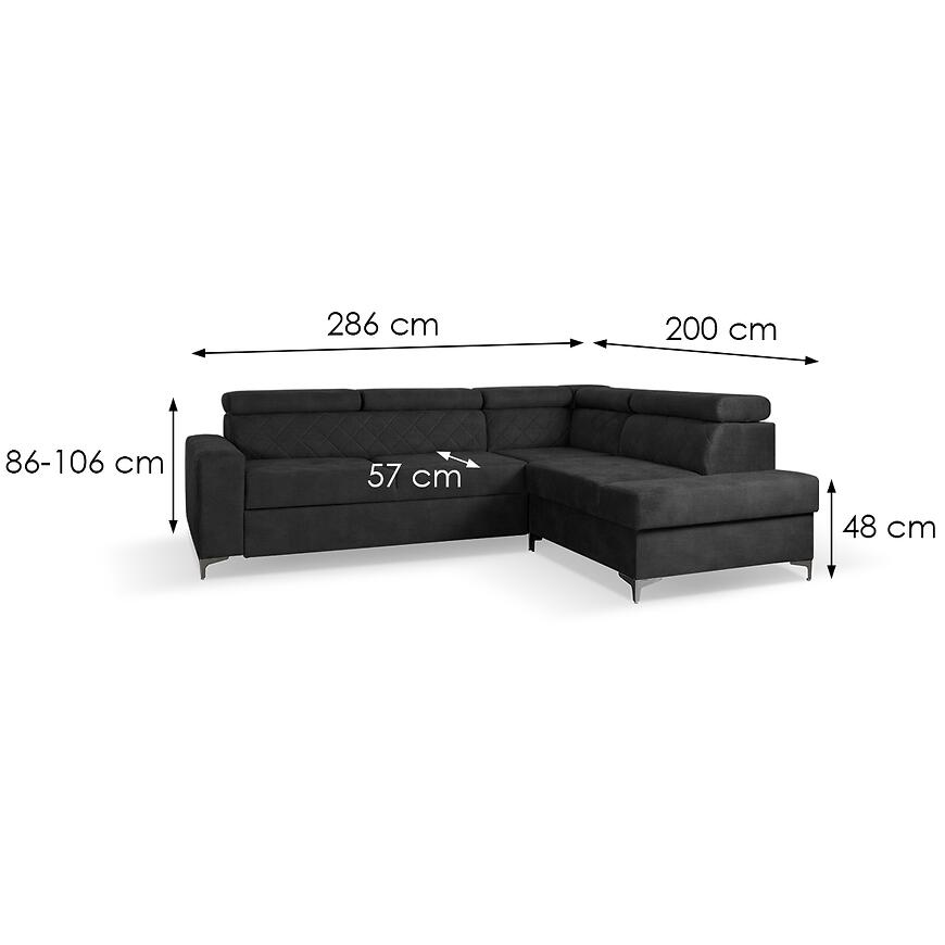 Narożnik Logan Wind 99 prawostronny to średniej wielkości narożnik w kształcie litery L o wymiarach 268×200 cm i wysokości 86/106 cm, tapicerowany szarą tkaniną. Siedzisko wypełnione sprężyną falistą zapewnia komfort użytkowania. Narożnik posiada funkcję spania typu delfin z powierzchnią spania 121×200 cm oraz jeden pojemnik na pościel. Wyposażony jest w regulowane zagłówki i chromowane nogi. Produkt waży 164 kg, nie zawiera poduszek ani pufy i wymaga montażu. To praktyczne i wygodne rozwiązanie dla osób potrzebujących narożnika z funkcją spania i miejscem do przechowywania.