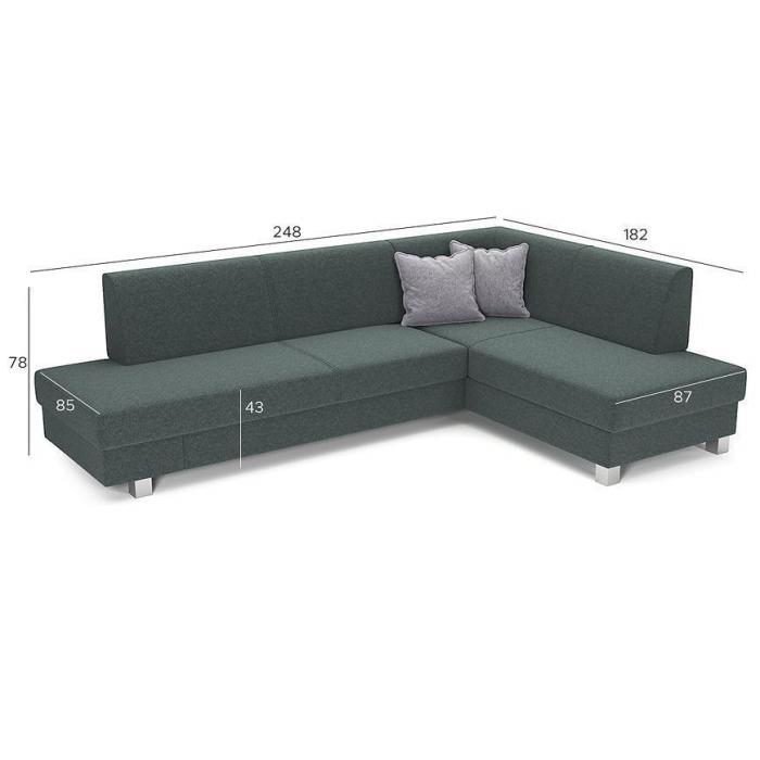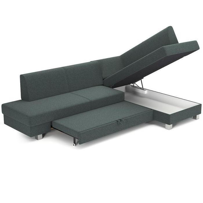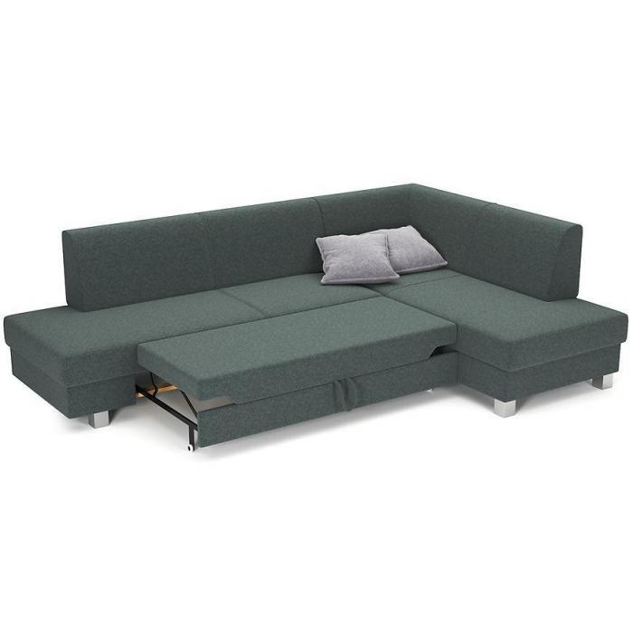 Narożniki z funkcją spania to doskonały wybór dla miłośników funkcjonalnych rozwiązań, którzy chcą zyskać dodatkowe miejsce wypoczynku nie tylko w ciągu dnia, ale także w nocy. Dzięki takiemu rozwiązaniu pokój dzienny może zamienić się w dodatkową sypialnię dla gości. Powierzchnia spania po rozłożeniu wynosi 120x200 cm. Zastosowany sposób rozkładania narożnika to delfin. Nowoczesny narożnik posiada jeden pojemnik na pościel.