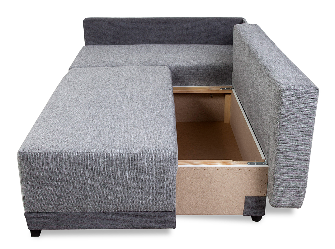 Narożnik Lotos został wyposażony w praktyczną funkcję spania oraz pojemnik na pościel, co czyni go wyjątkowo funkcjonalnym meblem. Rozkładanie narożnika jest niezwykle proste dzięki mechanizmowi typu DL. Po rozłożeniu, uzyskujemy przestronną powierzchnię spania o wymiarach 133x198 cm, która zapewni wygodny sen dla dwóch osób.