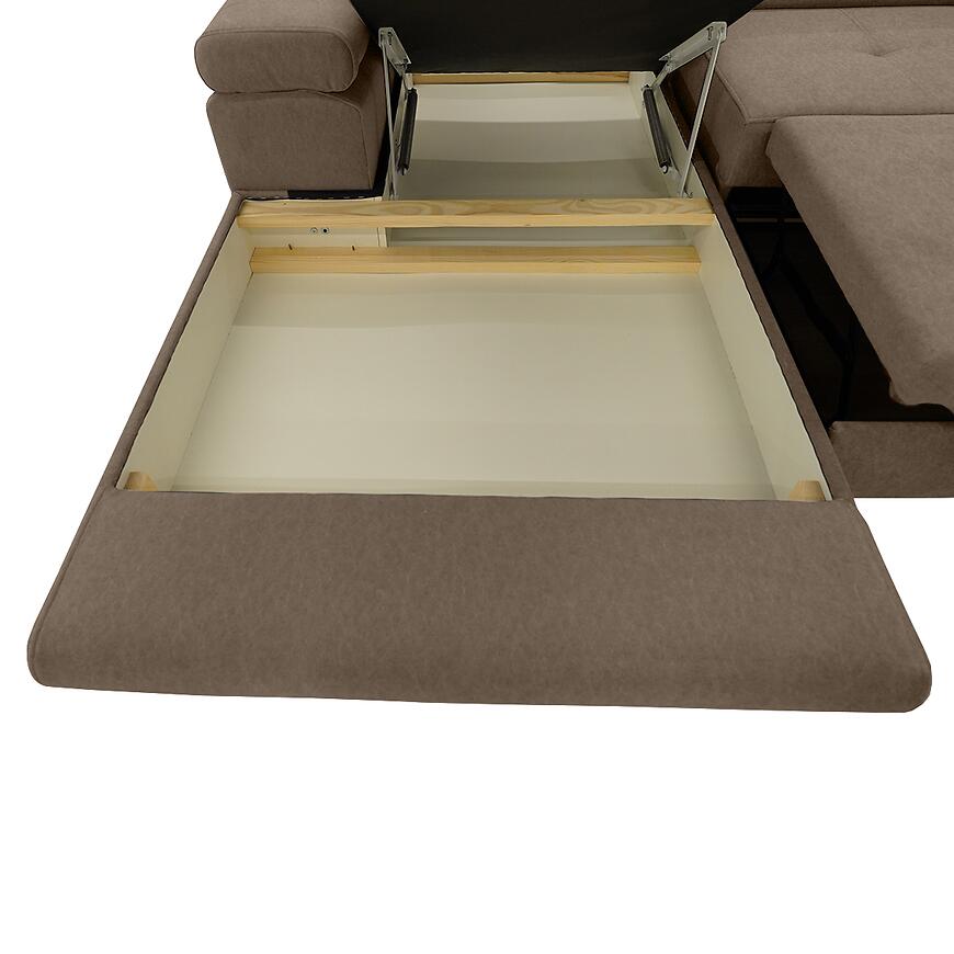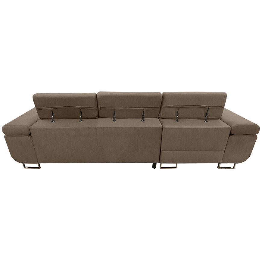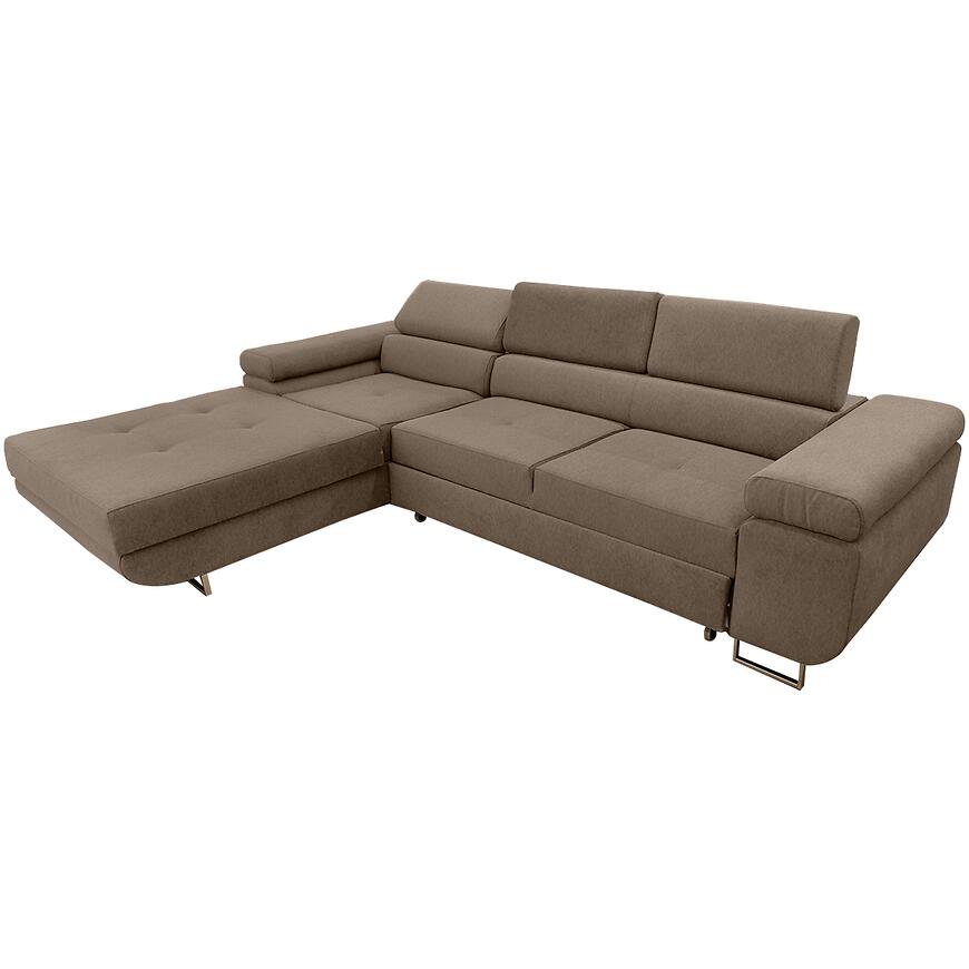 Narożnik z funkcją spania Lotus Castel 20 lewostronny to nowoczesny narożnik w stylu minimalistycznym, w kształcie litery L, łączący komfort i funkcjonalność. Posiada funkcję spania o powierzchni 125×193 cm z mechanizmem delfin oraz pojemnik na pościel, ułatwiający codzienne użytkowanie. Tapicerowany trwałą brązową tkaniną, z wypełnieniem na sprężynie falistej, wyposażony w regulowany zagłówek dla większej wygody. Stabilne chromowane nóżki dodają nowoczesnego charakteru. Solidny wybór dla osób ceniących komfort i funkcjonalność.