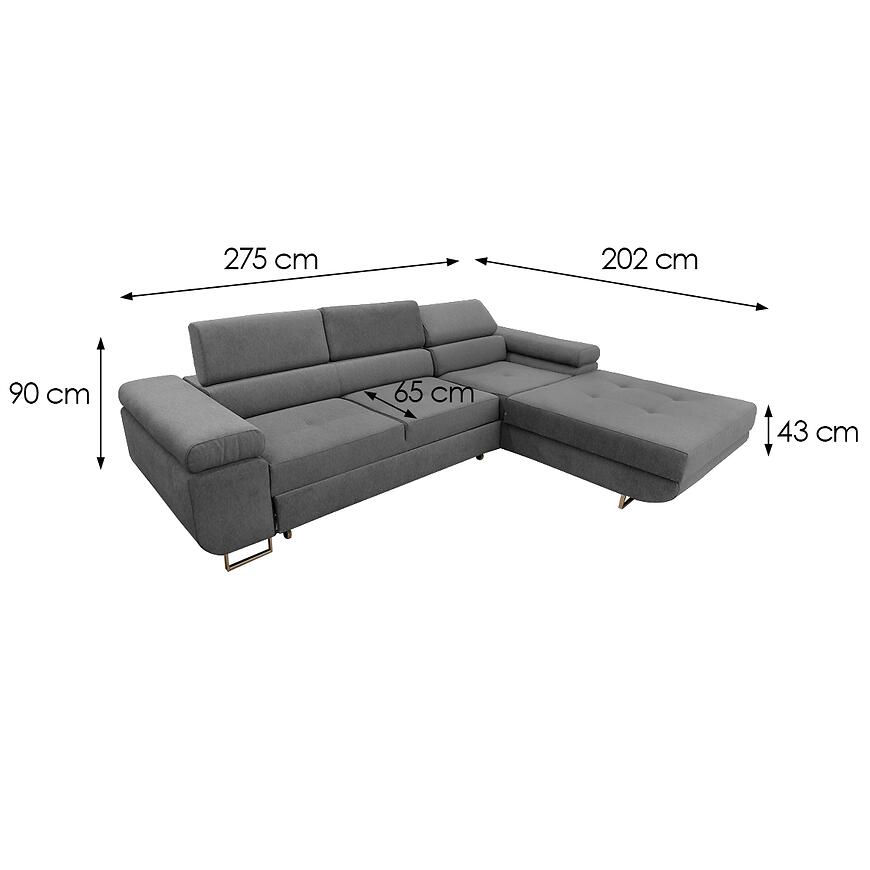 Narożnik z funkcją spania Lotus Castel 93 prawostronny to nowoczesny narożnik w stylu minimalistycznym, w kształcie litery L, łączący komfort z funkcjonalnością. Wyposażony w funkcję spania o powierzchni 125×193 cm z mechanizmem delfin oraz pojemnik na pościel, zapewnia praktyczne rozwiązania do codziennego użytkowania. Tapicerowany trwałą szarą tkaniną, z wypełnieniem na sprężynie falistej, posiada regulowany zagłówek dla większej wygody. Stabilne chromowane nóżki dodają nowoczesnego charakteru. Solidny wybór dla osób ceniących komfort i funkcjonalność.