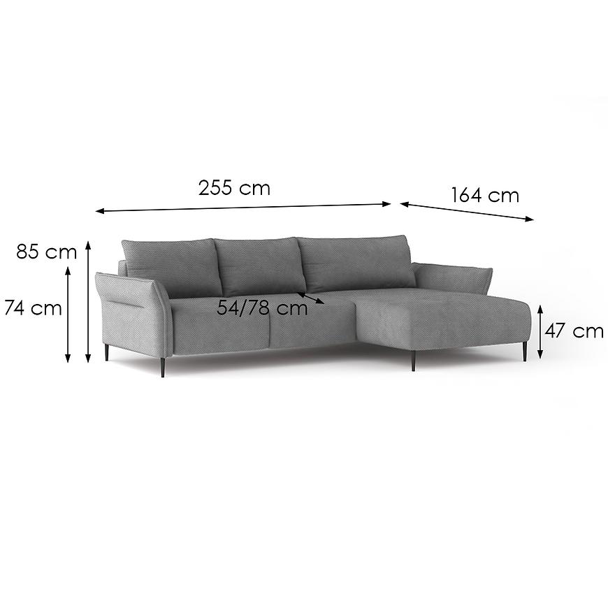 Model w kształcie litery L doskonale komponuje się z różnymi aranżacjami wnętrz – od nowoczesnych po klasyczne. Funkcja spania okazjonalnego z dużą powierzchnią aż 164x255 cm oraz mechanizm rozkładania DL pozwalają szybko przekształcić narożnik w wygodne miejsce do spania, idealne dla gości. Pojemnik na pościel umożliwia przechowywanie koców, poduszek lub innych akcesoriów, dbając o porządek w salonie.