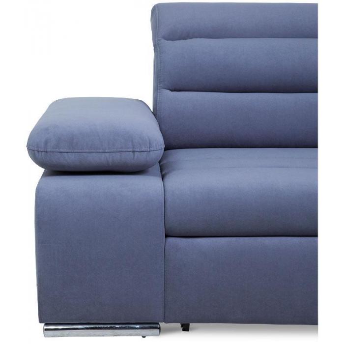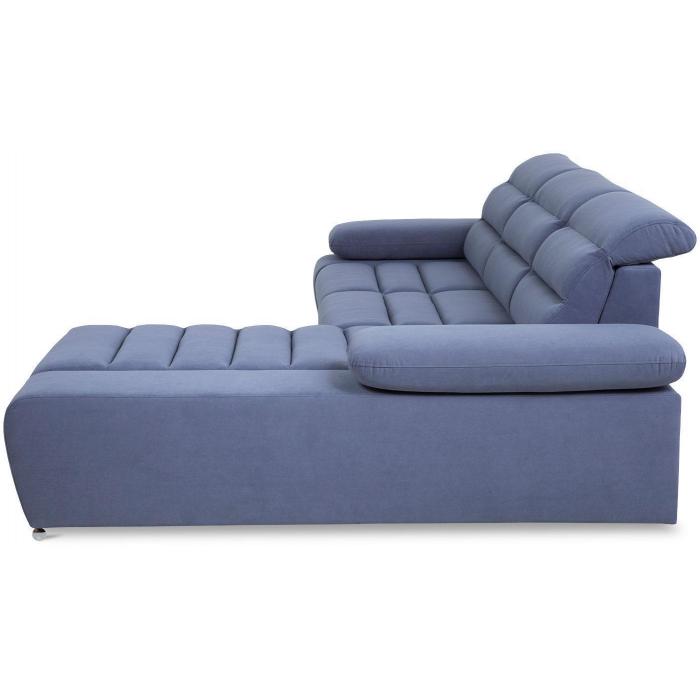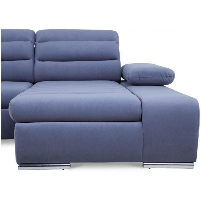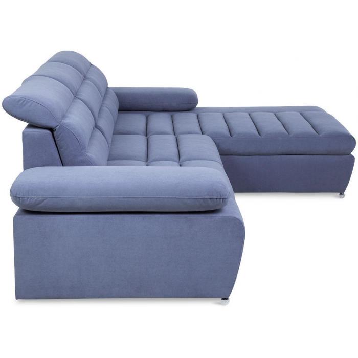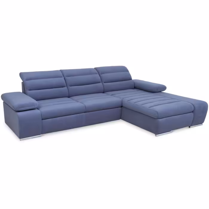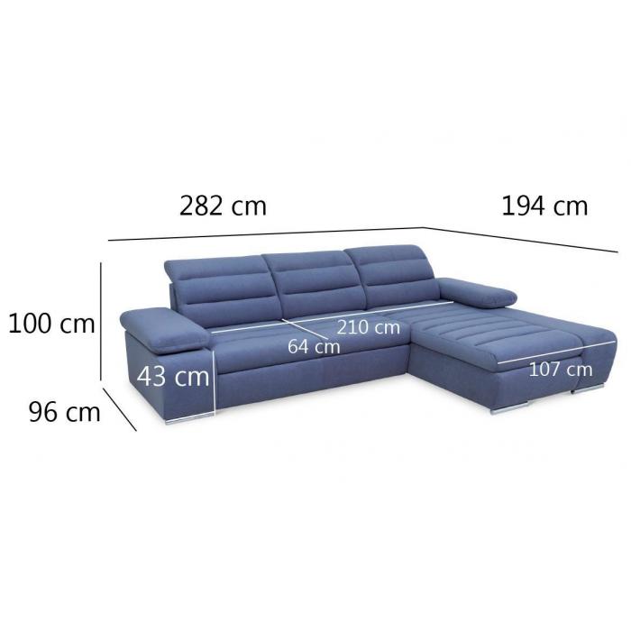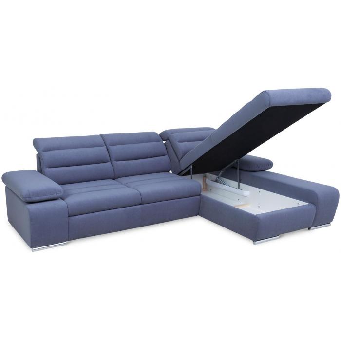 Rozkładana sofa narożna Luxor z funkcją spania, posiada jeden pojemnik na pościel - dodatkowe miejsce do przechowywania. Powierzchnia spania po rozłożeniu narożnika wynosi 124x210cm. Zastosowany sposób rozkładania w tym modelu to delfin, prosty i szybki w obsłudze. Regulowane, ruchome zagłówki i podłokietniki oraz delikatnie profilowane oparcie zapewniają komfortowy wypoczynek.