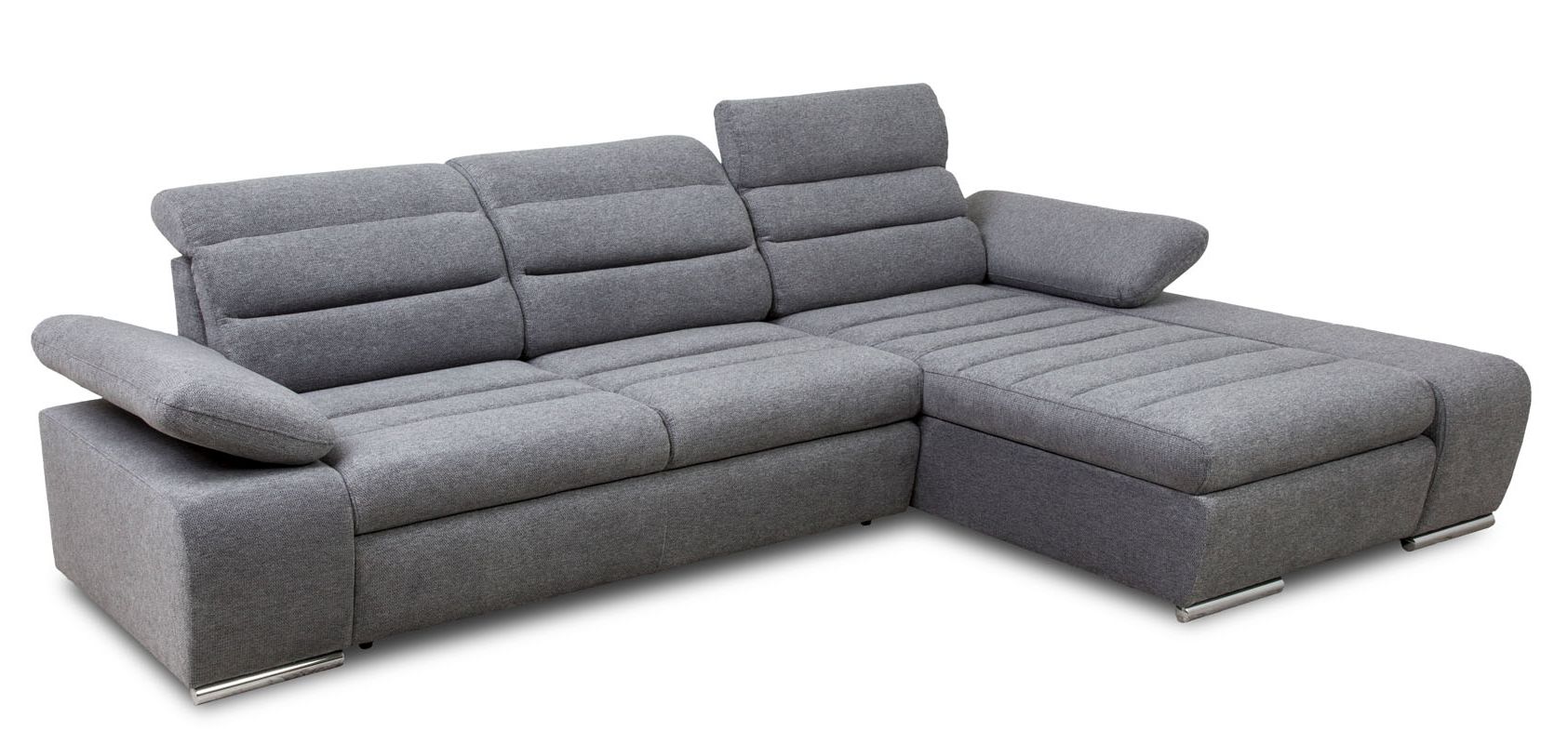 W siedzisku narożnika zastosowano sprężyny faliste, bonell oraz piankę HR3532, co gwarantuje optymalne wsparcie dla ciała podczas siedzenia i spania. Trzy ruchome zagłówki oraz ruchome podłokietniki dodatkowo podnoszą komfort wypoczynku, umożliwiając dostosowanie mebla do własnych potrzeb i preferencji. Innowacyjny sposób rozkładania delfin gwarantuje łatwość i szybkość transformacji narożnika w wygodne łóżko.