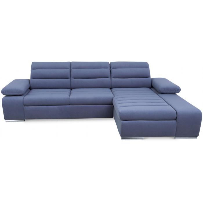 Rozkładana sofa narożna Luxor z funkcją spania, posiada jeden pojemnik na pościel - dodatkowe miejsce do przechowywania. Powierzchnia spania po rozłożeniu narożnika wynosi 124x210cm. Zastosowany sposób rozkładania w tym modelu to delfin, prosty i szybki w obsłudze. Regulowane, ruchome zagłówki i podłokietniki oraz delikatnie profilowane oparcie zapewniają komfortowy wypoczynek.