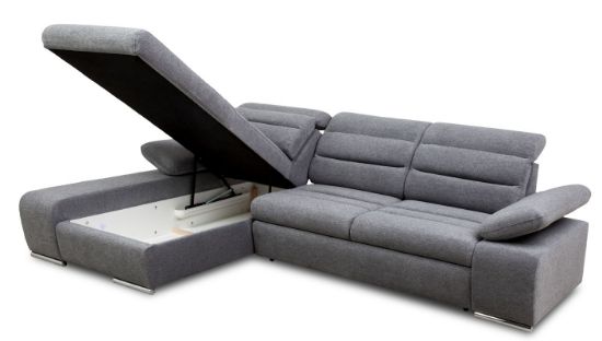 W siedzisku narożnika zastosowano sprężyny faliste, bonell oraz piankę HR3532, co gwarantuje optymalne wsparcie dla ciała podczas siedzenia i spania. Trzy ruchome zagłówki oraz ruchome podłokietniki umożliwiają dopasowanie mebla do własnych potrzeb, podnosząc tym samym komfort wypoczynku. Sposób rozkładania delfin zapewnia łatwość i szybkość transformacji narożnika w wygodne łóżko.