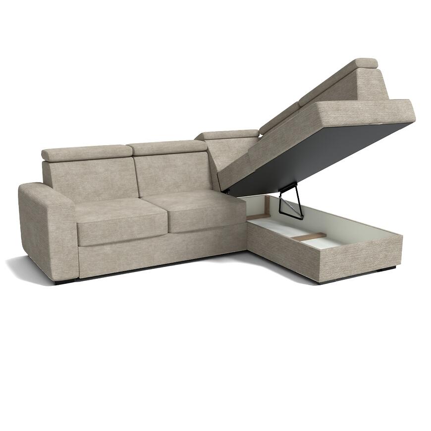 Tapicerowany narożnik z funkcją spania i pojemnikiem na pościel
