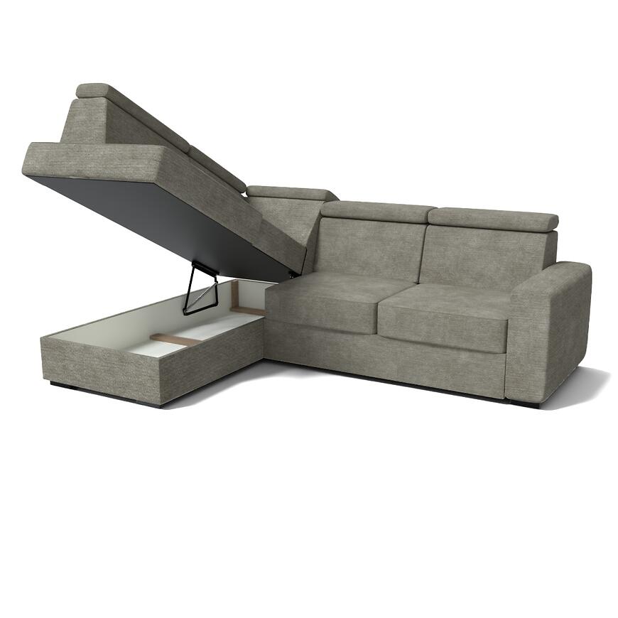 Tapicerowany narożnik z funkcją spania i pojemnikiem na pościel