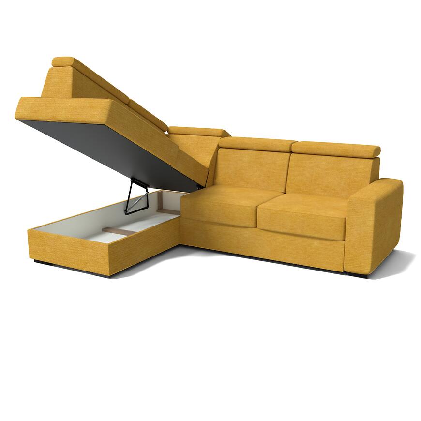 Tapicerowany narożnik z funkcją spania i pojemnikiem na pościel