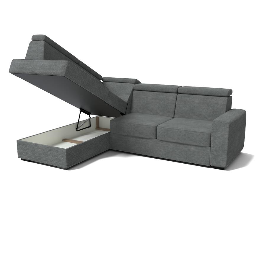 Tapicerowany narożnik z funkcją spania i pojemnikiem na pościel