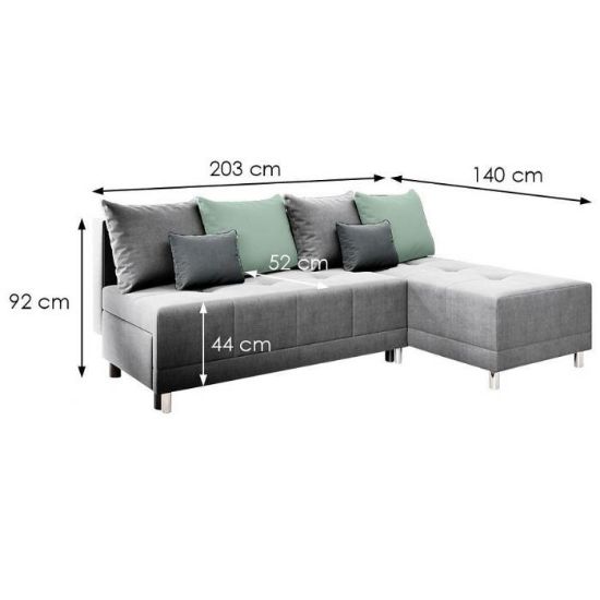 Narożnik Max New Gusto z funkcją spania został pokryty tkaniną . Prostotę i łatwość użytkowania gwarantuje system rozkładania typu DL. Jest to szybki, prosty i wygodny sposób rozkładania. Jest jednym z najbardziej popularnych systemów rozkładania, który jest wykorzystywany w narożnikach. Po rozłożeniu to okazjonalne miejsce do spania o wymiarach 125x203 cm. Mebel posiada pojemnik, do którego można schować pościel, dodatkowe koce czy też poduszki. W siedzisku zastosowano piankę, która dostosowuje się do ciężaru i kształtu ciała, zapewniając tym samym wysoki komfort siedzenia. Ten niepowtarzalny mebel wypoczynkowy stworzono z myślą o funkcjonalności i eleganckim wyglądzie. Narożnik dostępny w wersji uniwersalnej.