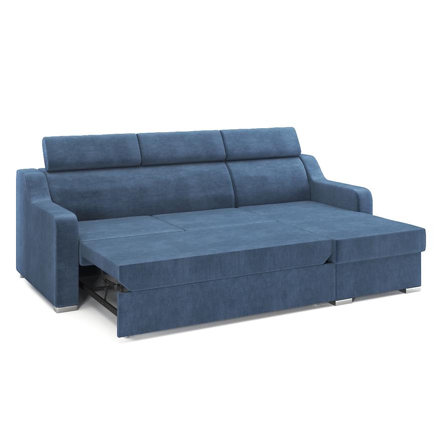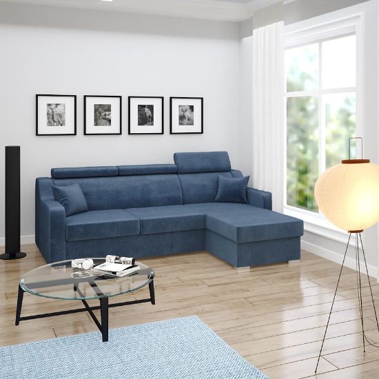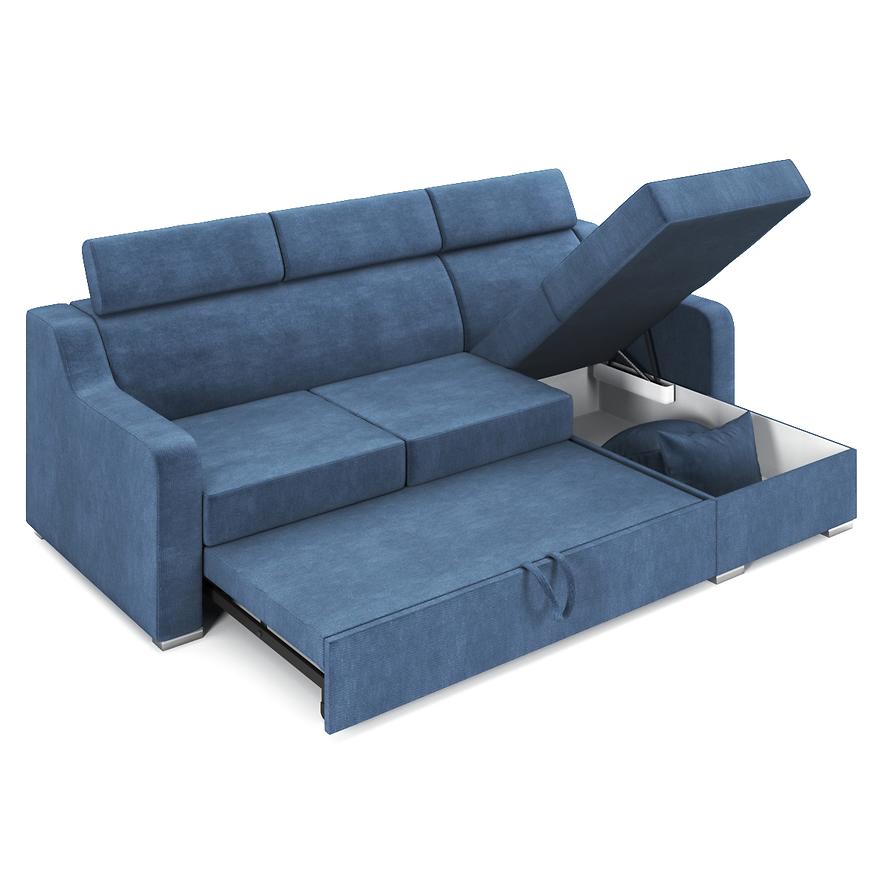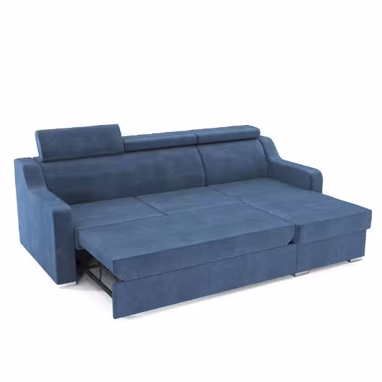 Siedzisko narożnika wypełnione sprężyną falistą gwarantuje doskonałe wsparcie dla ciała, zapewniając nie tylko wygodę, ale również trwałość na lata. Zastosowanie sprężyny falistej jako wypełnienia sprawia, że narożnik Melfi utrzymuje swoją formę i komfort użytkowania nawet przy intensywnym codziennym użytkowaniu. Narożnik w kształcie litery L o uniwersalnej orientacji doskonale wpasowuje się w różne aranżacje przestrzeni mieszkalnej. Po rozłożeniu to okazjonalne miejsce do spania, co jest idealnym rozwiązaniem dla gości czy chwilowego relaksu. Sposób rozkładania delfin oraz automat do rozkładania sprawiają, że transformacja narożnika jest łatwa i intuicyjna. Dodatkowym atutem jest pojemnik na pościel, który ułatwia przechowywanie dodatkowych elementów użytkowych. Regulowany zagłówek to element, który pozwala dostosować kąt nachylenia do indywidualnych preferencji, zapewniając dodatkowy komfort podczas odpoczynku. Nogi narożnika dodają mu lekkości i umożliwiają łatwe utrzymanie podłogi w czystości.