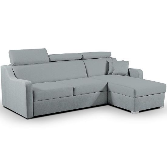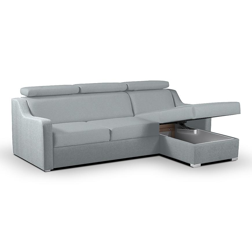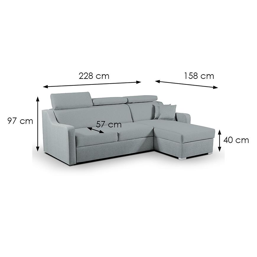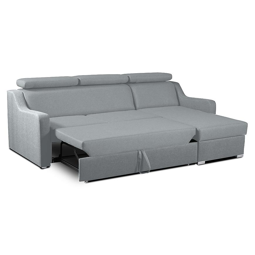 Siedzisko narożnika wypełnione sprężyną falistą gwarantuje doskonałe wsparcie dla ciała, zapewniając nie tylko wygodę, ale również trwałość na lata. Zastosowanie sprężyny falistej jako wypełnienia sprawia, że narożnik Melfi utrzymuje swoją formę i komfort użytkowania nawet przy intensywnym codziennym użytkowaniu. Narożnik w kształcie litery L o uniwersalnej orientacji doskonale wpasowuje się w różne aranżacje przestrzeni mieszkalnej. Po rozłożeniu to okazjonalne miejsce do spania, co jest idealnym rozwiązaniem dla gości czy chwilowego relaksu. Sposób rozkładania delfin oraz automat do rozkładania sprawiają, że transformacja narożnika jest łatwa i intuicyjna. Dodatkowym atutem jest pojemnik na pościel, który ułatwia przechowywanie dodatkowych elementów użytkowych. Regulowany zagłówek to element, który pozwala dostosować kąt nachylenia do indywidualnych preferencji, zapewniając dodatkowy komfort podczas odpoczynku. Nogi w kolorze srebrnym narożnika dodają mu lekkości i umożliwiają łatwe utrzymanie podłogi w czystości.