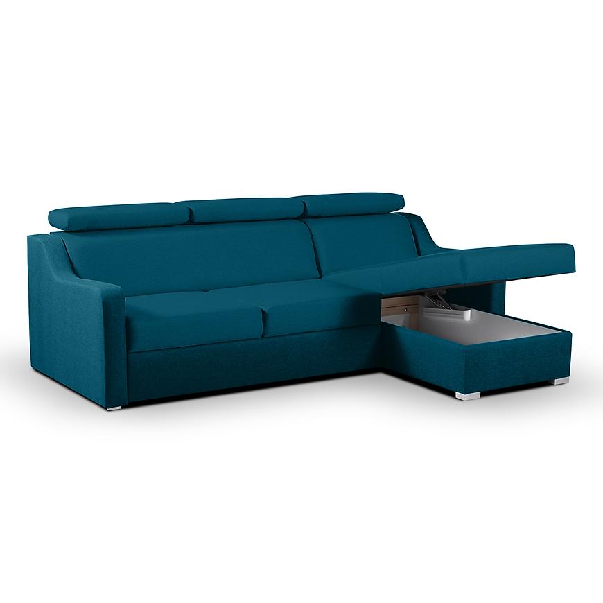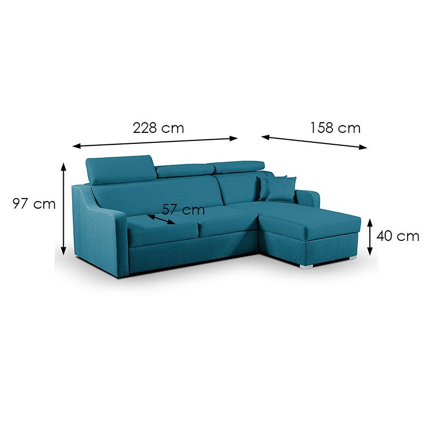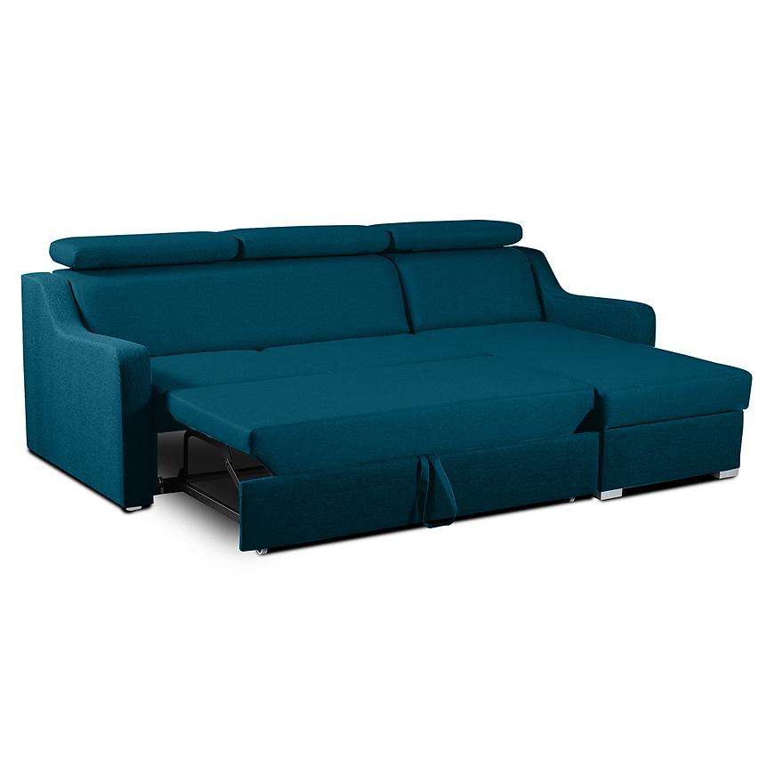 Siedzisko narożnika wypełnione sprężyną falistą gwarantuje doskonałe wsparcie dla ciała, zapewniając nie tylko wygodę, ale również trwałość na lata. Zastosowanie sprężyny falistej jako wypełnienia sprawia, że narożnik Melfi utrzymuje swoją formę i komfort użytkowania nawet przy intensywnym codziennym użytkowaniu. Narożnik w kształcie litery L o uniwersalnej orientacji doskonale wpasowuje się w różne aranżacje przestrzeni mieszkalnej. Po rozłożeniu to okazjonalne miejsce do spania, co jest idealnym rozwiązaniem dla gości czy chwilowego relaksu. Sposób rozkładania delfin oraz automat do rozkładania sprawiają, że transformacja narożnika jest łatwa i intuicyjna. Dodatkowym atutem jest pojemnik na pościel, który ułatwia przechowywanie dodatkowych elementów użytkowych. Regulowany zagłówek to element, który pozwala dostosować kąt nachylenia do indywidualnych preferencji, zapewniając dodatkowy komfort podczas odpoczynku. Nogi w kolorze srebrnym narożnika dodają mu lekkości i umożliwiają łatwe utrzymanie podłogi w czystości.