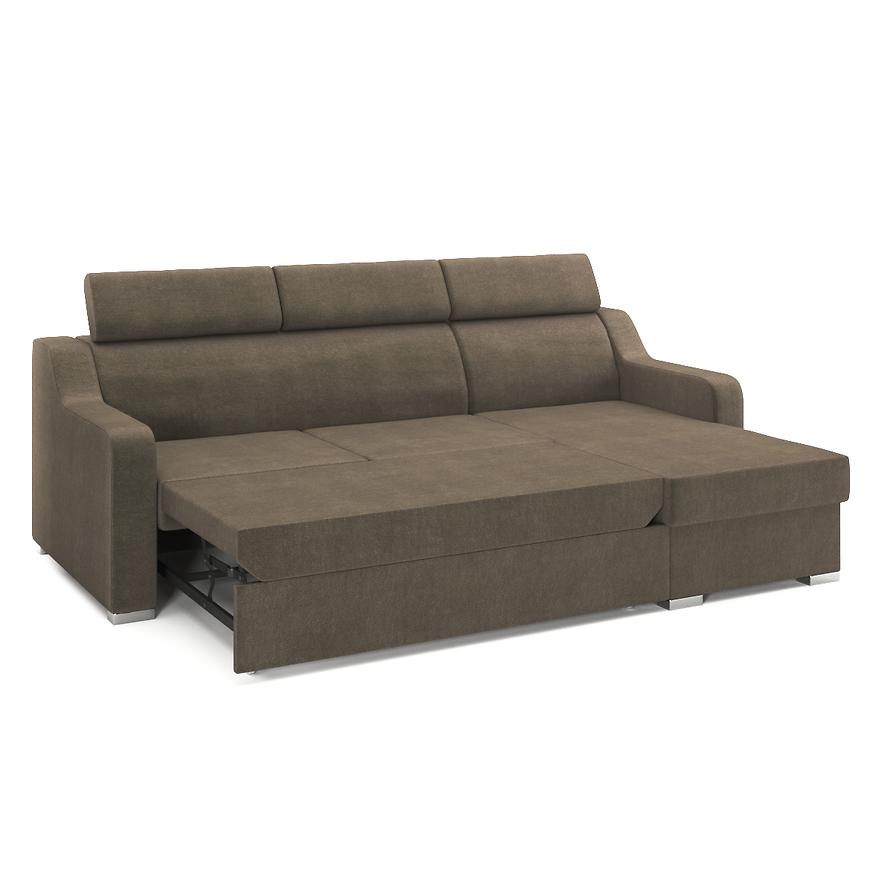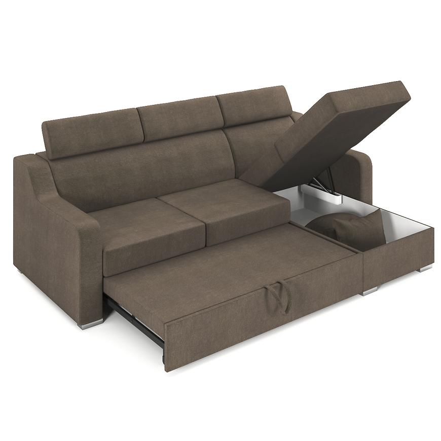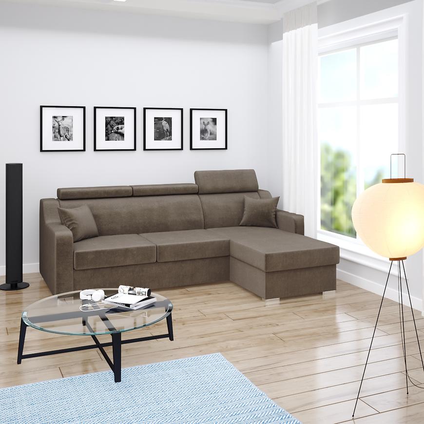 Siedzisko narożnika wypełnione sprężyną falistą gwarantuje doskonałe wsparcie dla ciała, zapewniając nie tylko wygodę, ale również trwałość na lata. Zastosowanie sprężyny falistej jako wypełnienia sprawia, że narożnik Melfi utrzymuje swoją formę i komfort użytkowania nawet przy intensywnym codziennym użytkowaniu. Narożnik w kształcie litery L o uniwersalnej orientacji doskonale wpasowuje się w różne aranżacje przestrzeni mieszkalnej. Po rozłożeniu to okazjonalne miejsce do spania, co jest idealnym rozwiązaniem dla gości czy chwilowego relaksu. Sposób rozkładania delfin oraz automat do rozkładania sprawiają, że transformacja narożnika jest łatwa i intuicyjna. Dodatkowym atutem jest pojemnik na pościel, który ułatwia przechowywanie dodatkowych elementów użytkowych. Regulowany zagłówek to element, który pozwala dostosować kąt nachylenia do indywidualnych preferencji, zapewniając dodatkowy komfort podczas odpoczynku. Nogi narożnika dodają mu lekkości i umożliwiają łatwe utrzymanie podłogi w czystości.