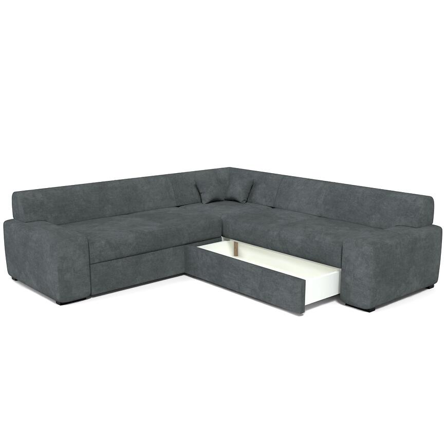 Narożnik Minos Maxi Glory w kolorze ciemny szary to średniej wielkości narożnik w kształcie litery L, idealny do nowoczesnych wnętrz. Jego uniwersalna orientacja pozwala na dopasowanie do każdego układu pomieszczenia, a rozkładana konstrukcja w systemie „delfin” zapewnia szybkie i wygodne stworzenie powierzchni spania 195x135 cm. Dzięki temu narożnik Minos Maxi Glory łączy funkcję wypoczynkową z praktycznym miejscem do spania dla gości.