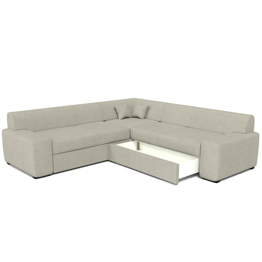 Minos Maxi Glory to narożnik rozkładany z funkcją spania, który po rozłożeniu oferuje komfortową powierzchnię 195x135 cm. Mechanizm delfin umożliwia szybkie rozłożenie bez wysiłku, a jeden pojemnik na pościel pozwala na przechowywanie koców, poduszek i pościeli, utrzymując porządek w salonie. Narożnik posiada również nóżki, które ułatwiają utrzymanie czystości pod meblem.