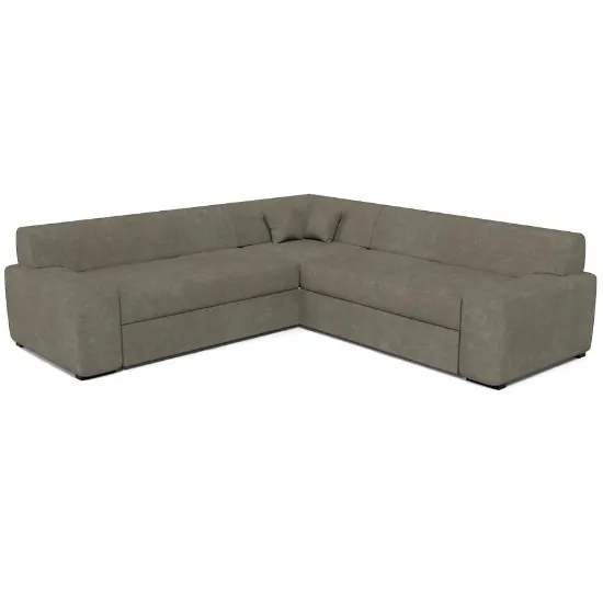 Minos Maxi Glory to narożnik rozkładany z funkcją spania, który po rozłożeniu oferuje komfortową powierzchnię 195x135 cm. Mechanizm delfin umożliwia szybkie rozłożenie bez wysiłku, a jeden pojemnik na pościel pozwala na przechowywanie koców, poduszek i pościeli, utrzymując porządek w salonie. Narożnik posiada również nóżki, które ułatwiają utrzymanie czystości pod meblem.